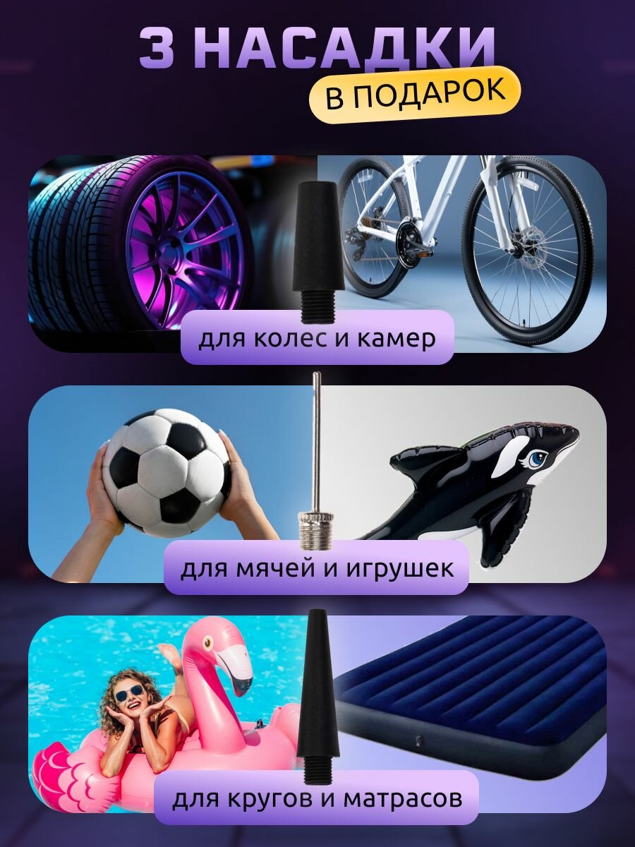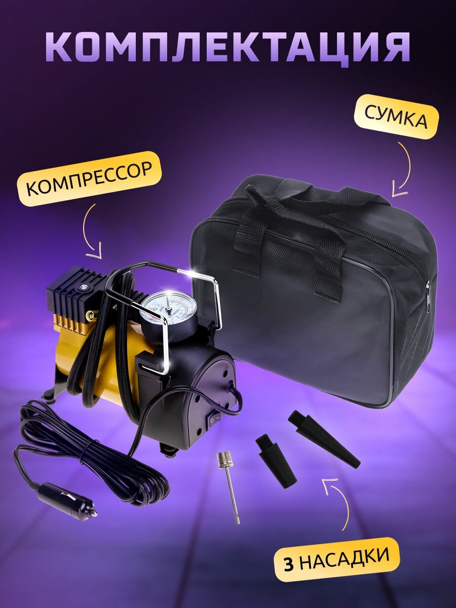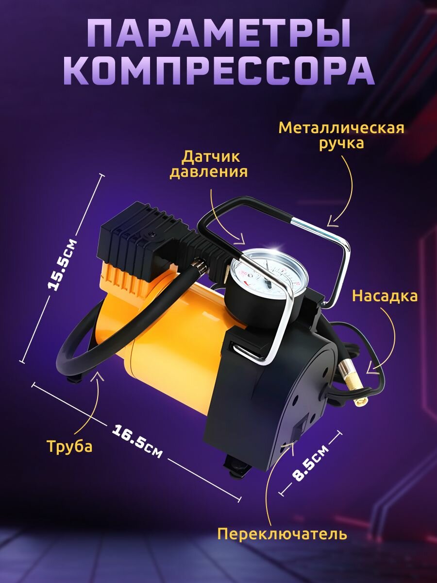 Компрессор автомобильный Classmark аккумуляторный, напряжение 12 В, с манометром, безмасляный, поршневой воздушный насос интересное: