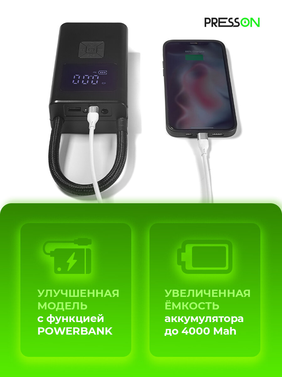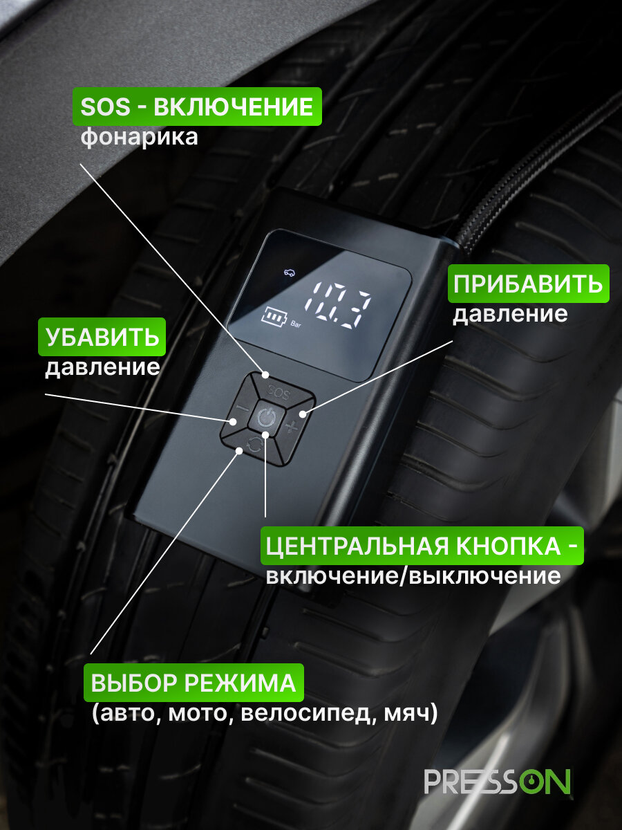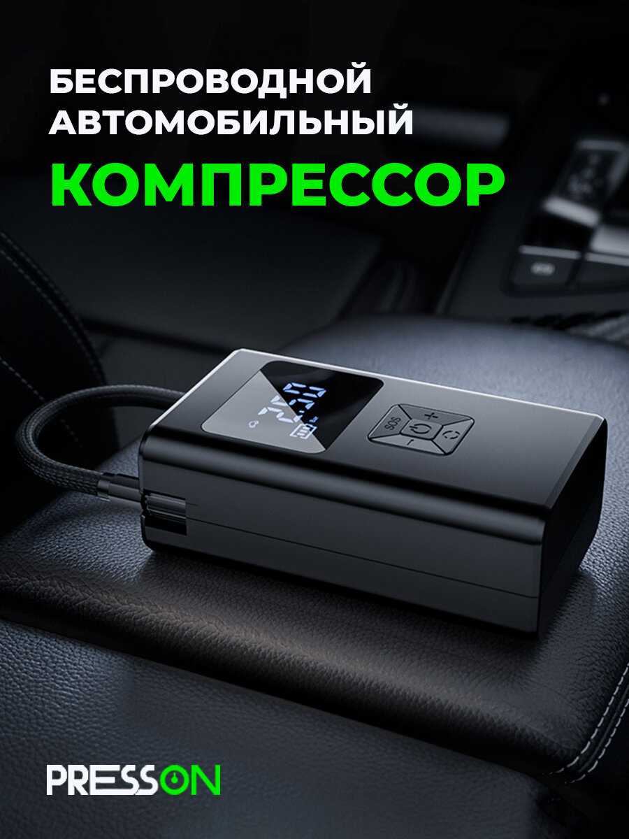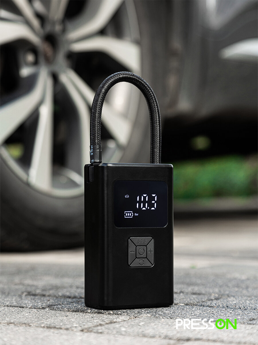 Компрессор автомобильный PressON, беспроводной автоматический насос с функцией автостоп интересное: