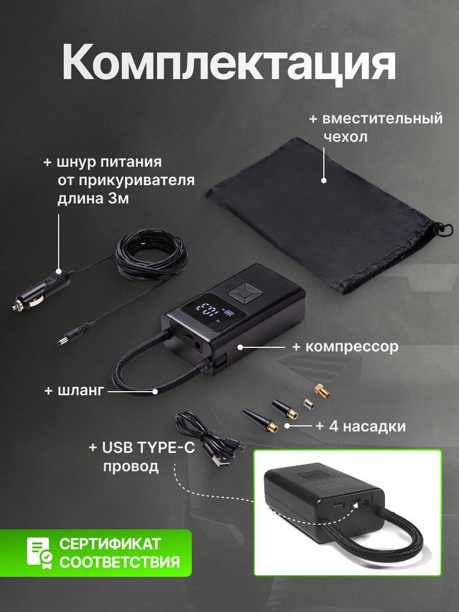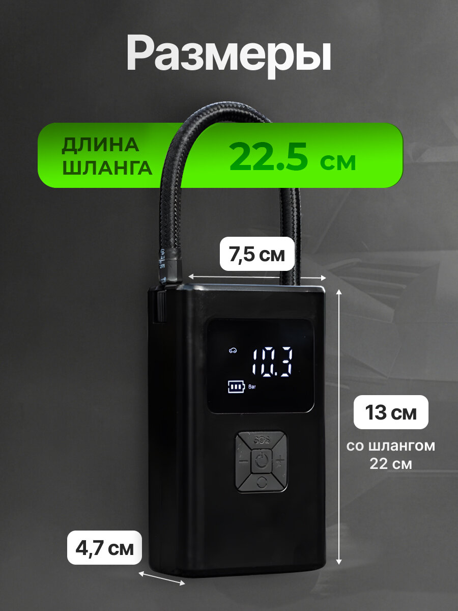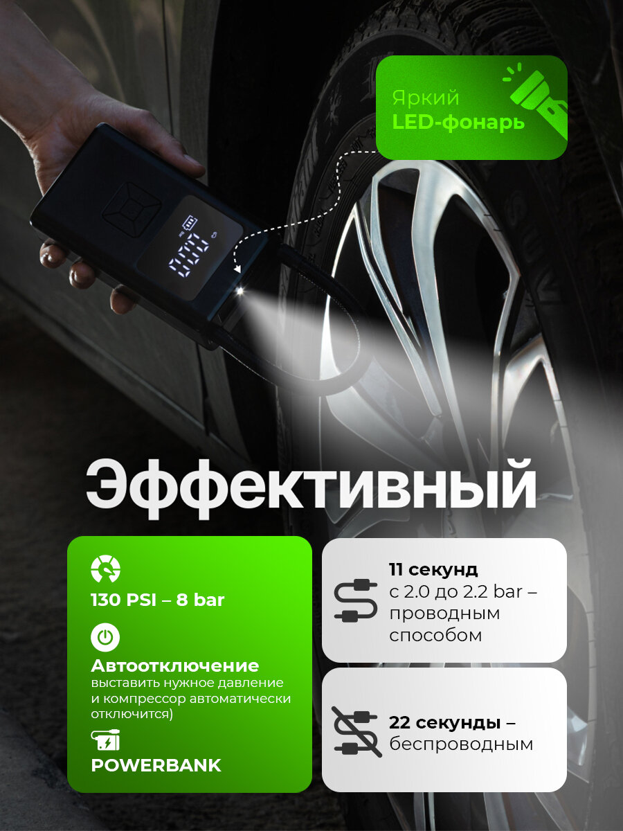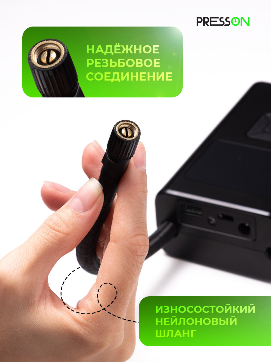 Компрессор автомобильный PressON, беспроводной автоматический насос с функцией автостоп интересное: