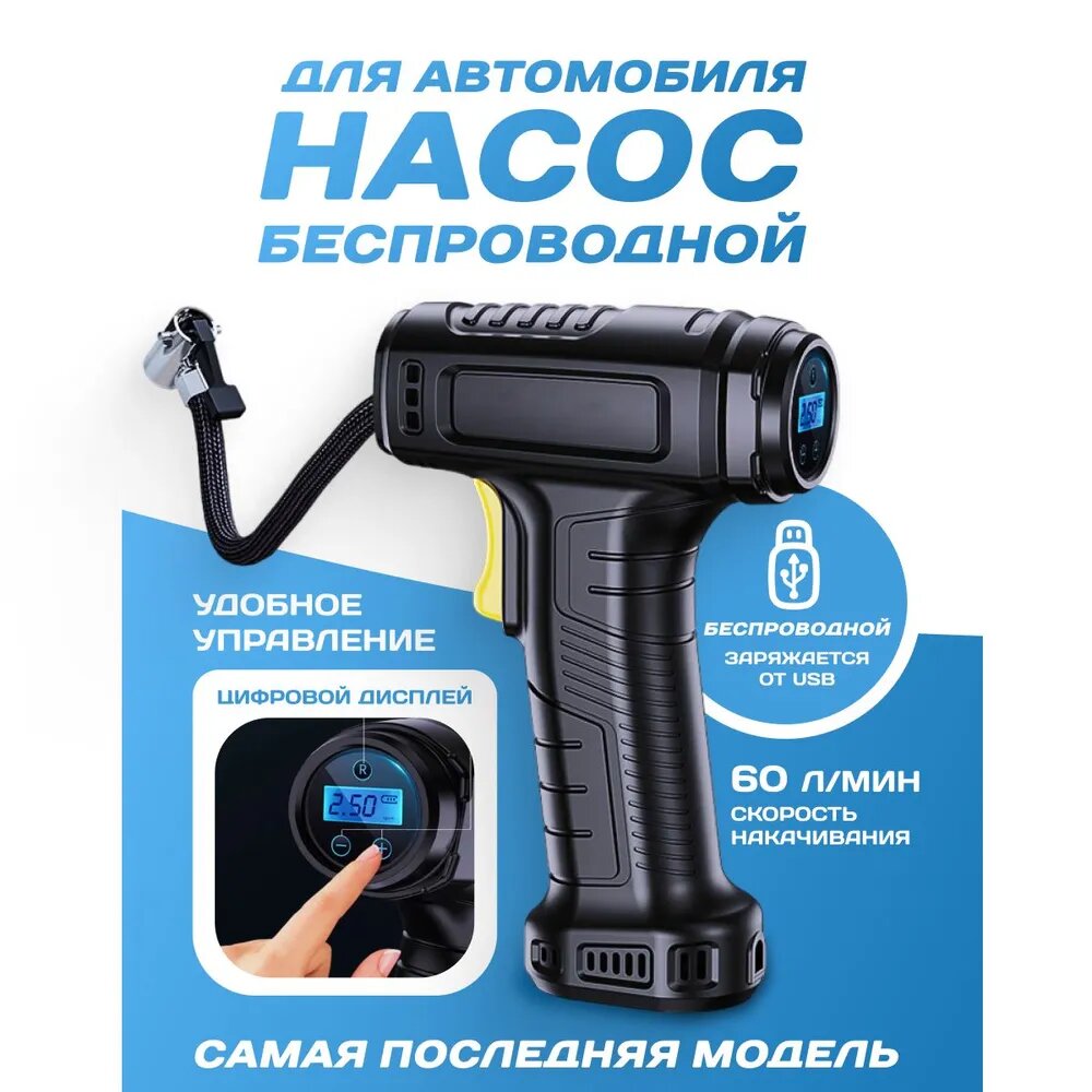 Насос автомобильный VeloSmile, ручной, беспроводной, 80Вт, 60л/мин интересное:
