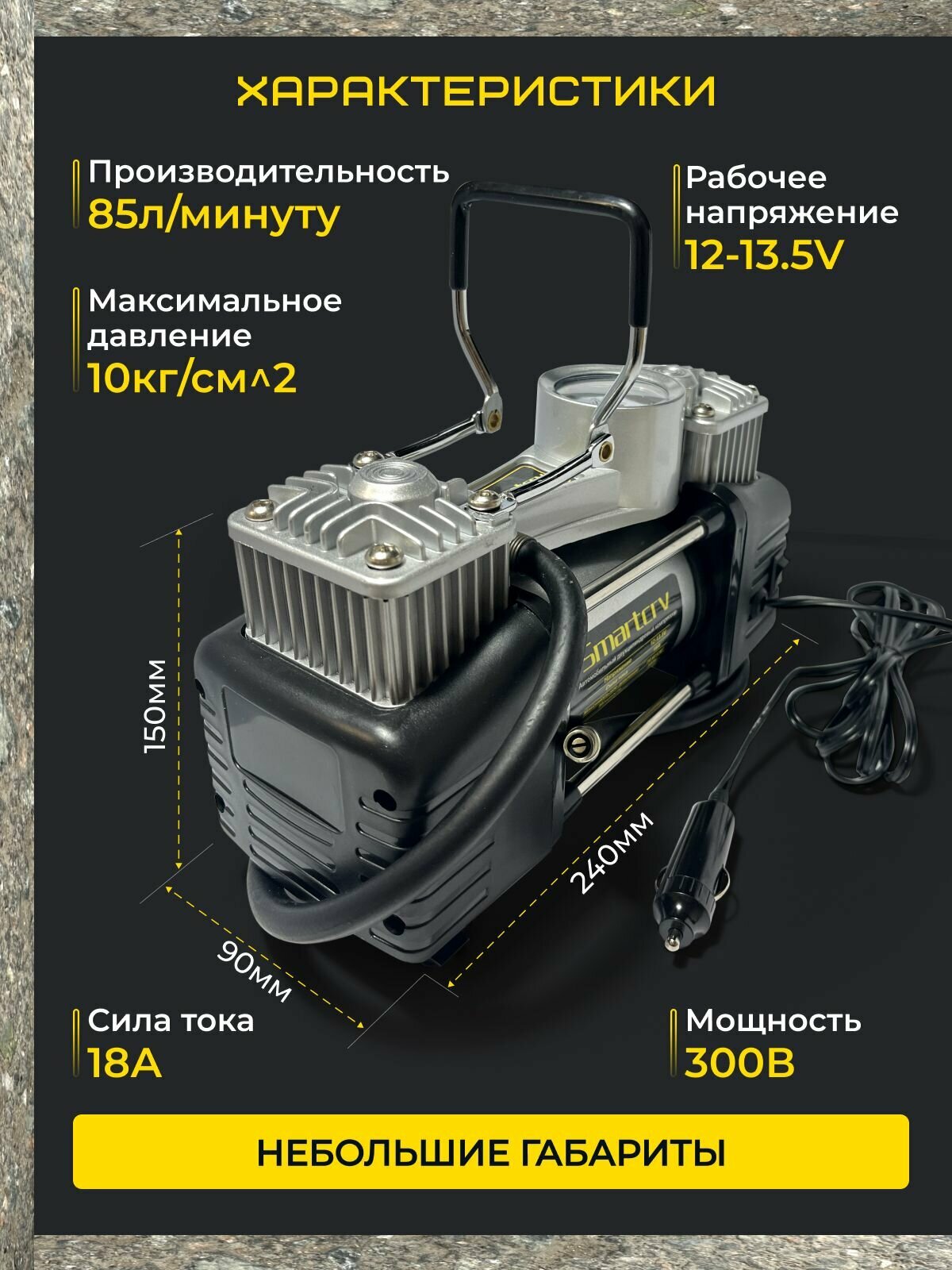 Компрессор Smartcrv, двухпоршневый, от прикуривателя/аккумулятора, 300Вт, 85л/мин интересное: