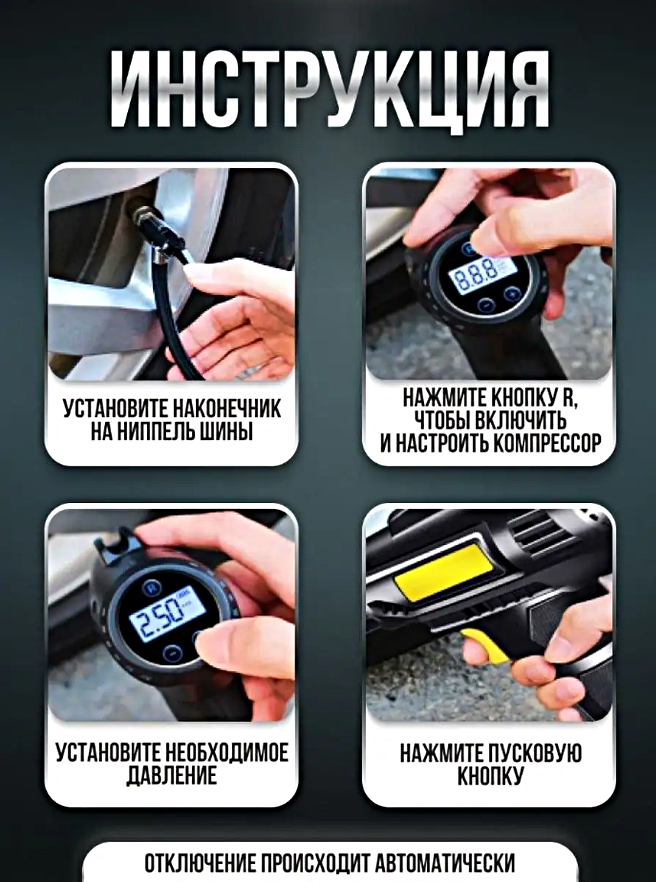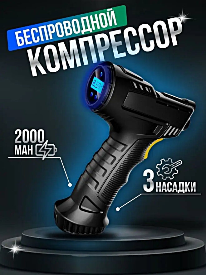 Компрессор беспроводной CZK, Портативный насос универсальный для машины, мотоцикла, велосипеда, мяча, Черный интересное: