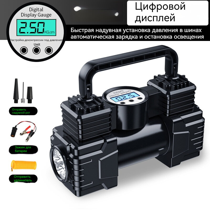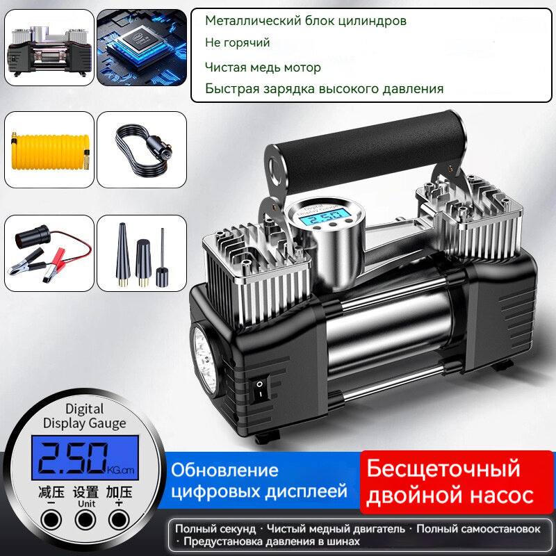 Купить Компрессор для автомобильных шин, с двойным цилиндром, с цифровым манометром