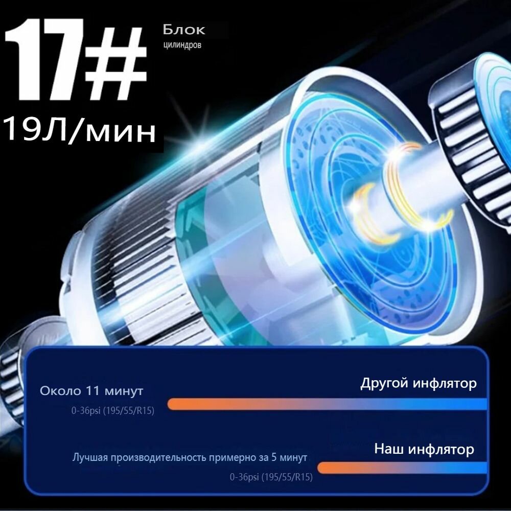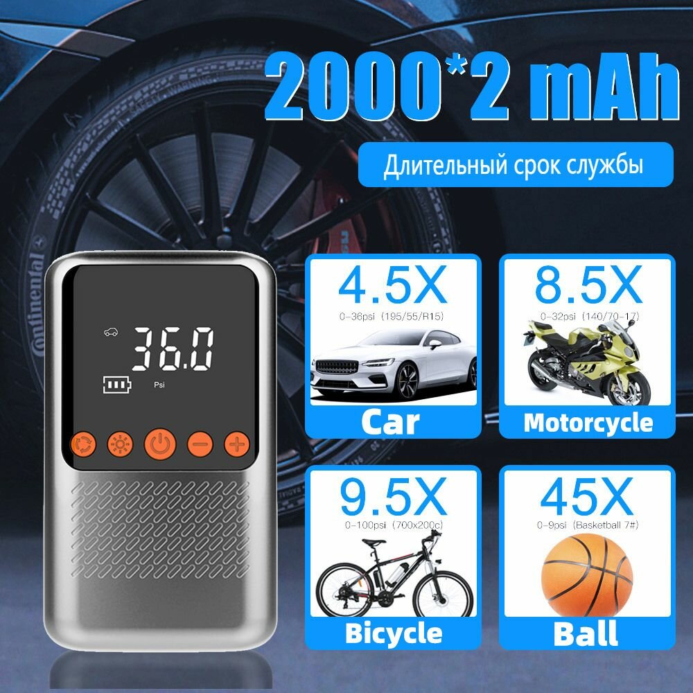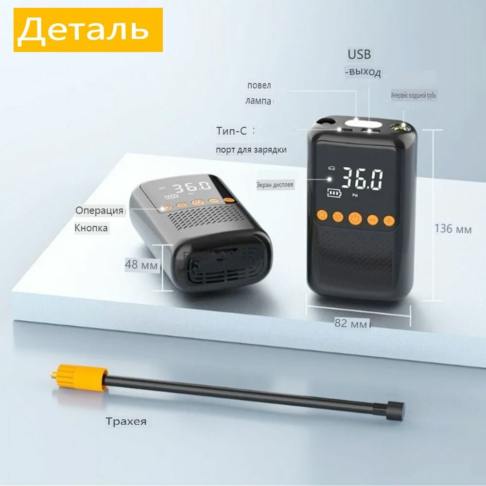 Компрессор автомобильный портативный, Беспроводной, 80 Вт, с цифровым манометром и фонарем, 19 л/мин, 4000 мАч PowerBank интересное: