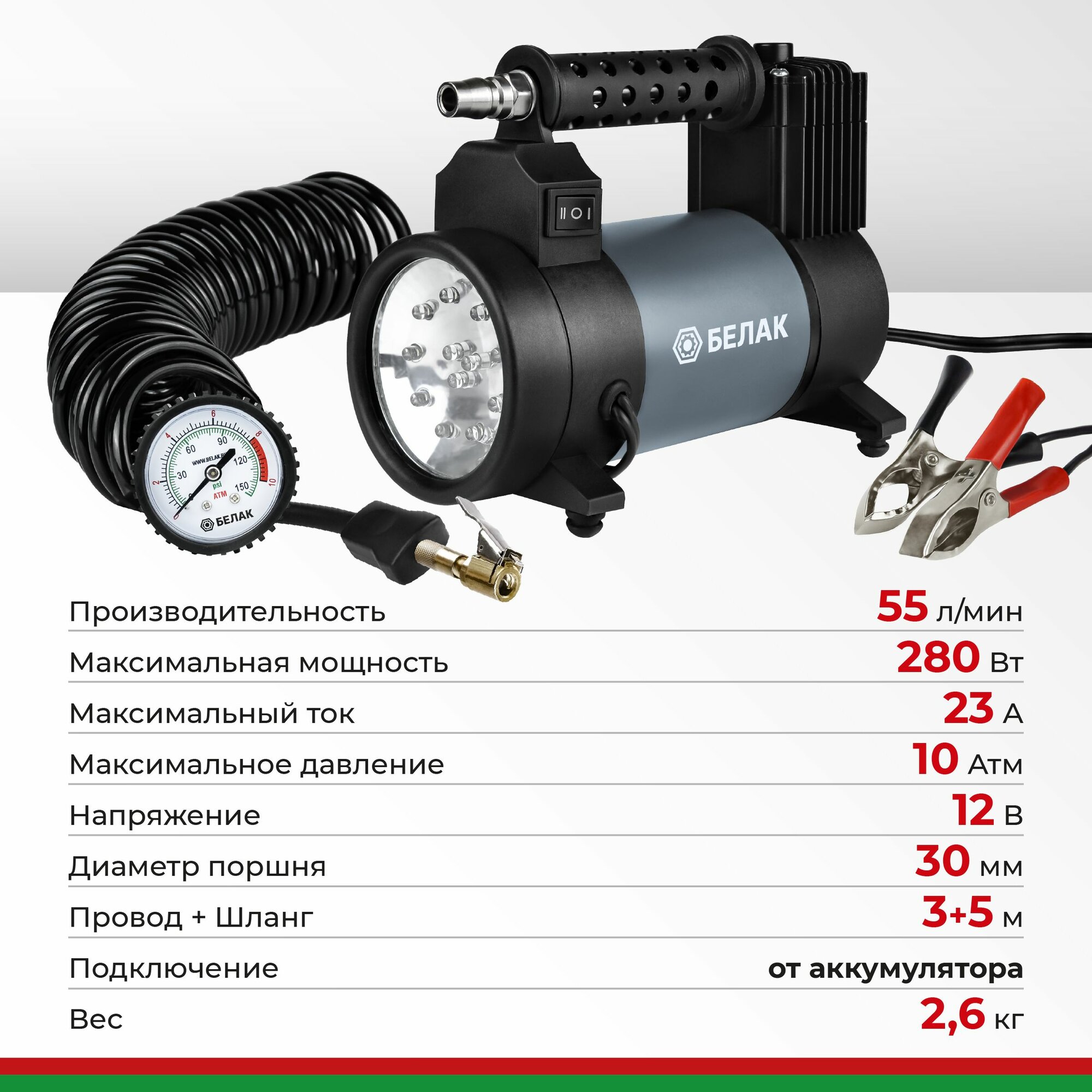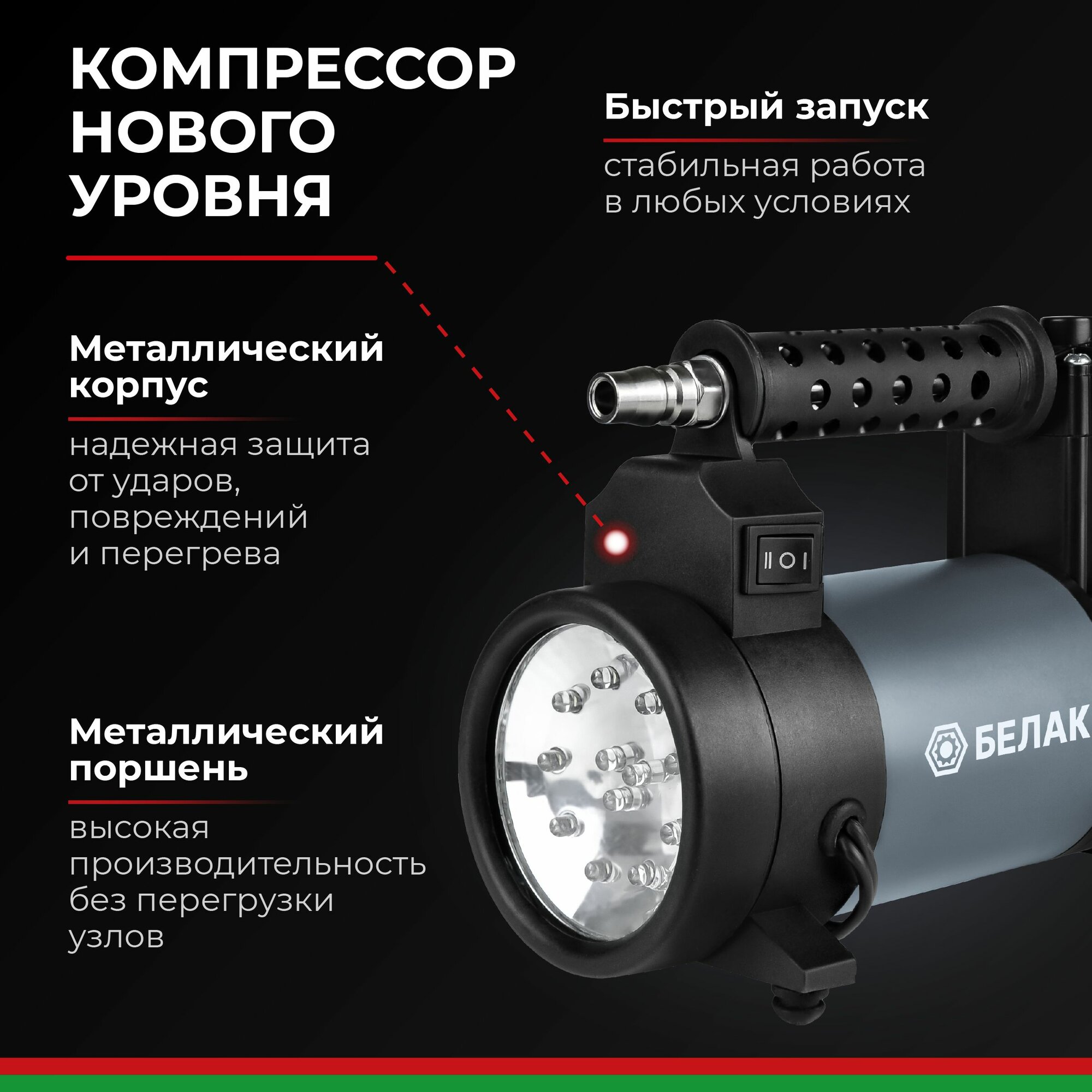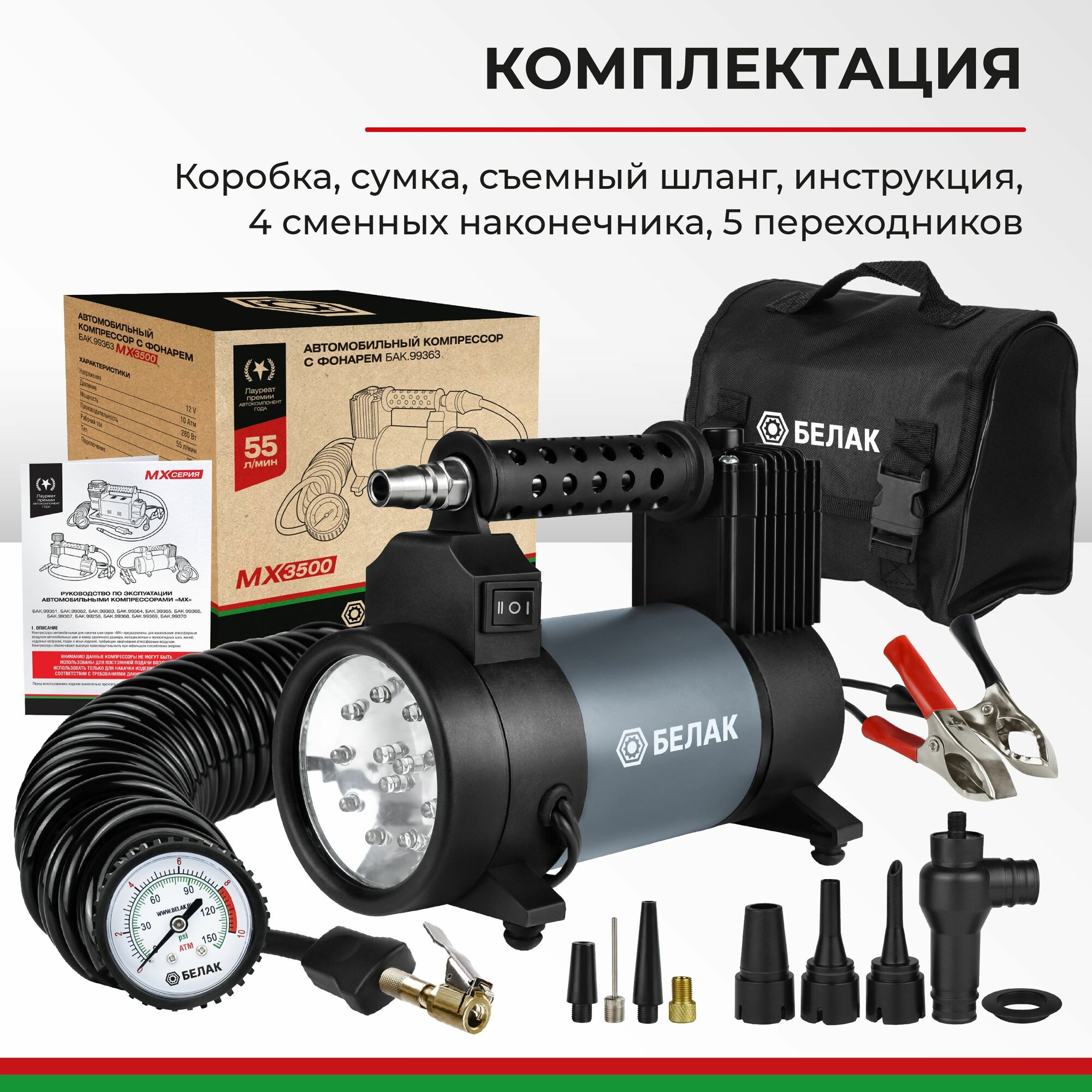 Компрессор автомобильный мощный 55 л/мин, с фонарем, MX Серия, БелАК БАК.99363 интересное: