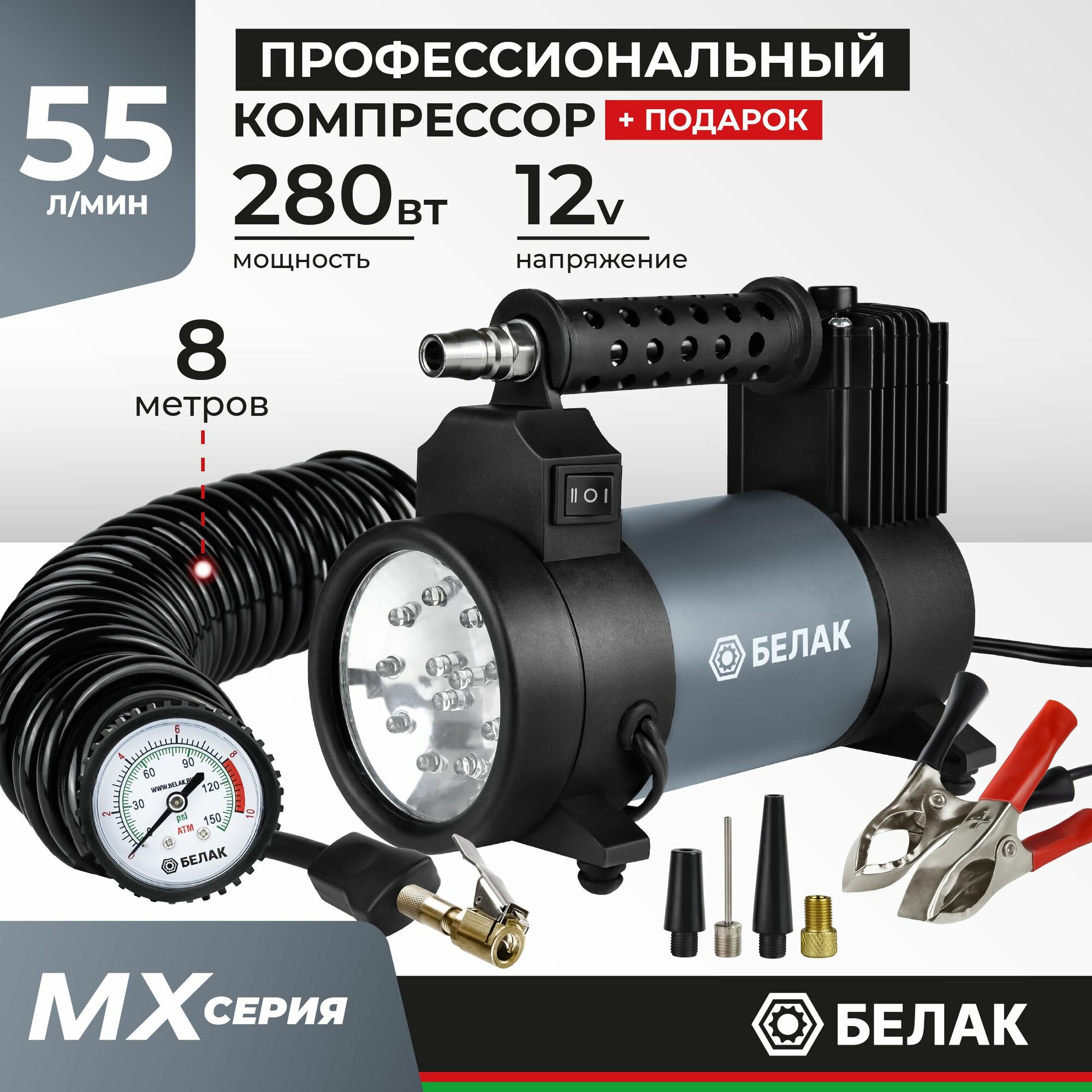 Купить Компрессор автомобильный мощный 55 л/мин, с фонарем, MX Серия, БелАК БАК.99363