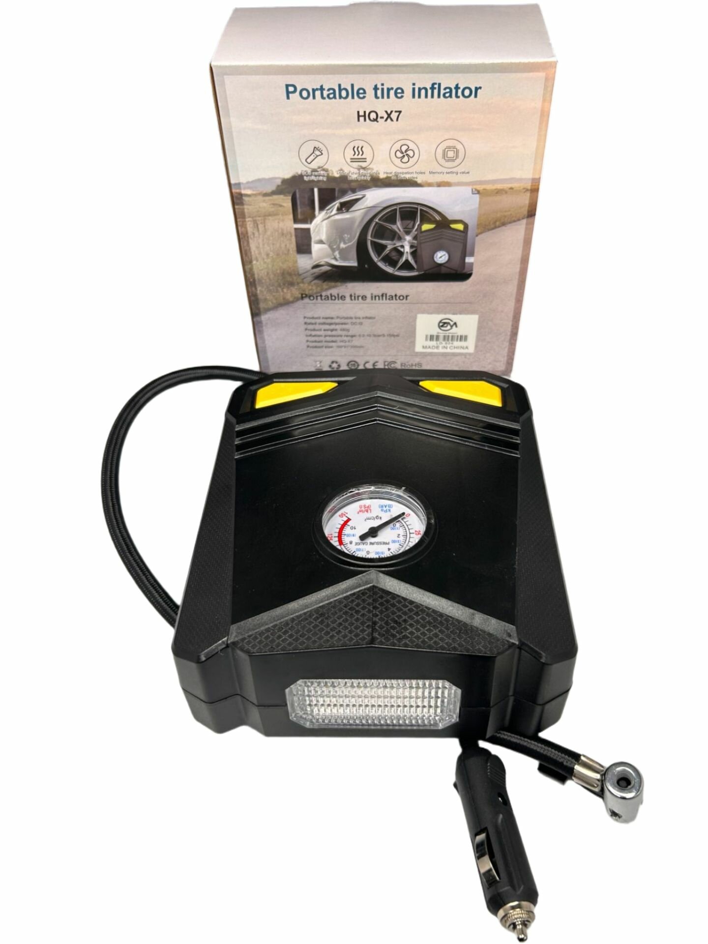 Купить Компрессор автомобильный HQ-X7 / Насос электрический от прикуривателя 12V c фонариком