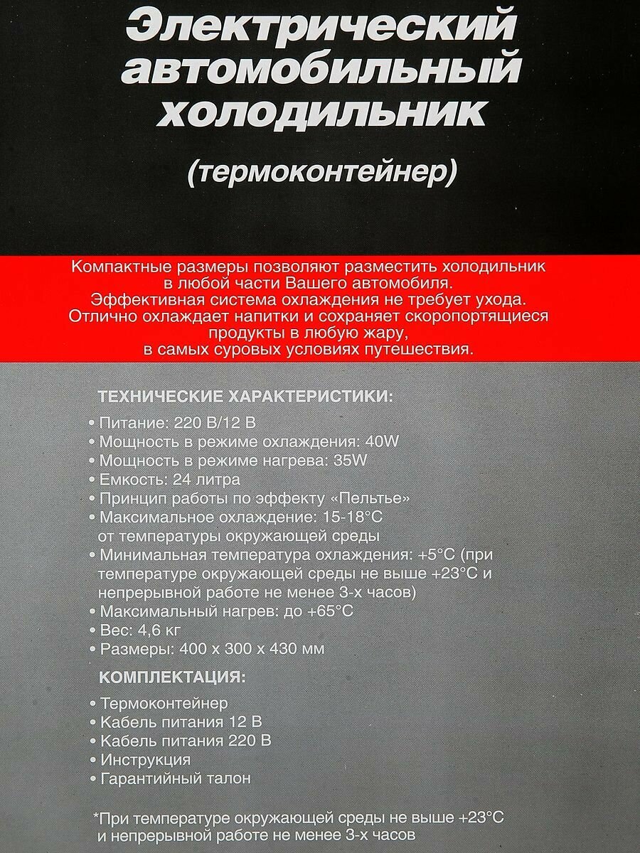 Холодильник автомобильный AVS CC-24NB, термоэлектрический, 24 л интересное: