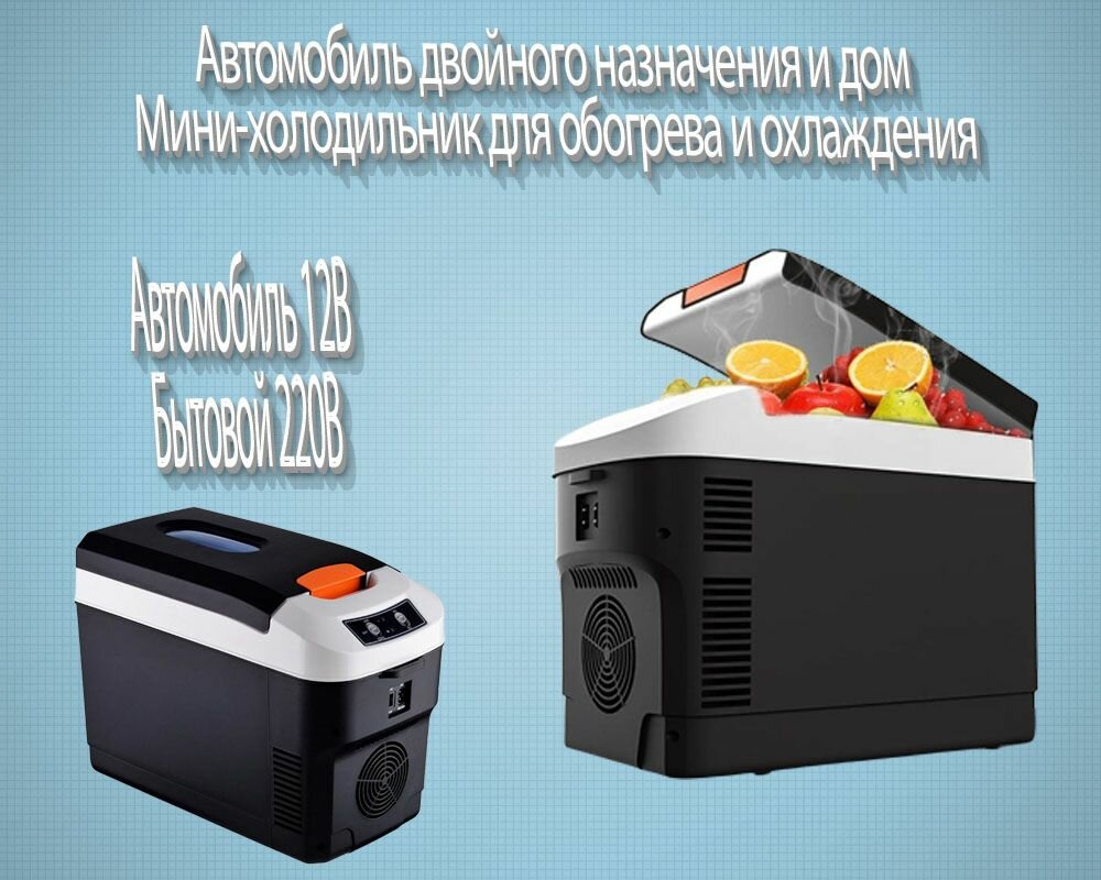 Холодильник автомобильный, 10 литров, подходит для использования в автомобиле 12 В, в быту 220 В, Может охлаждаться и нагреваться, черное интересное: