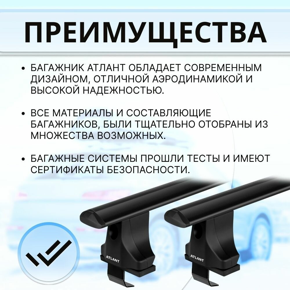 Купить Багажник Атлант на гладкую крышу CHEVROLET Matiz M200 5-дв хэтчбек 2005-2007, черные поперечины типа крыло, 75 кг, 110 см