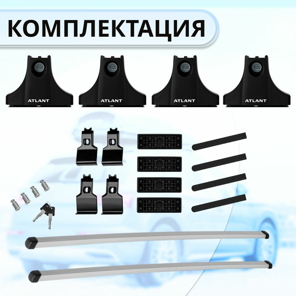 Багажник Атлант на гладкую крышу CHEVROLET Matiz M200 5-дв хэтчбек 2005-2007, поперечины усиленные типа аэро, 90 кг, 110 см , с замком