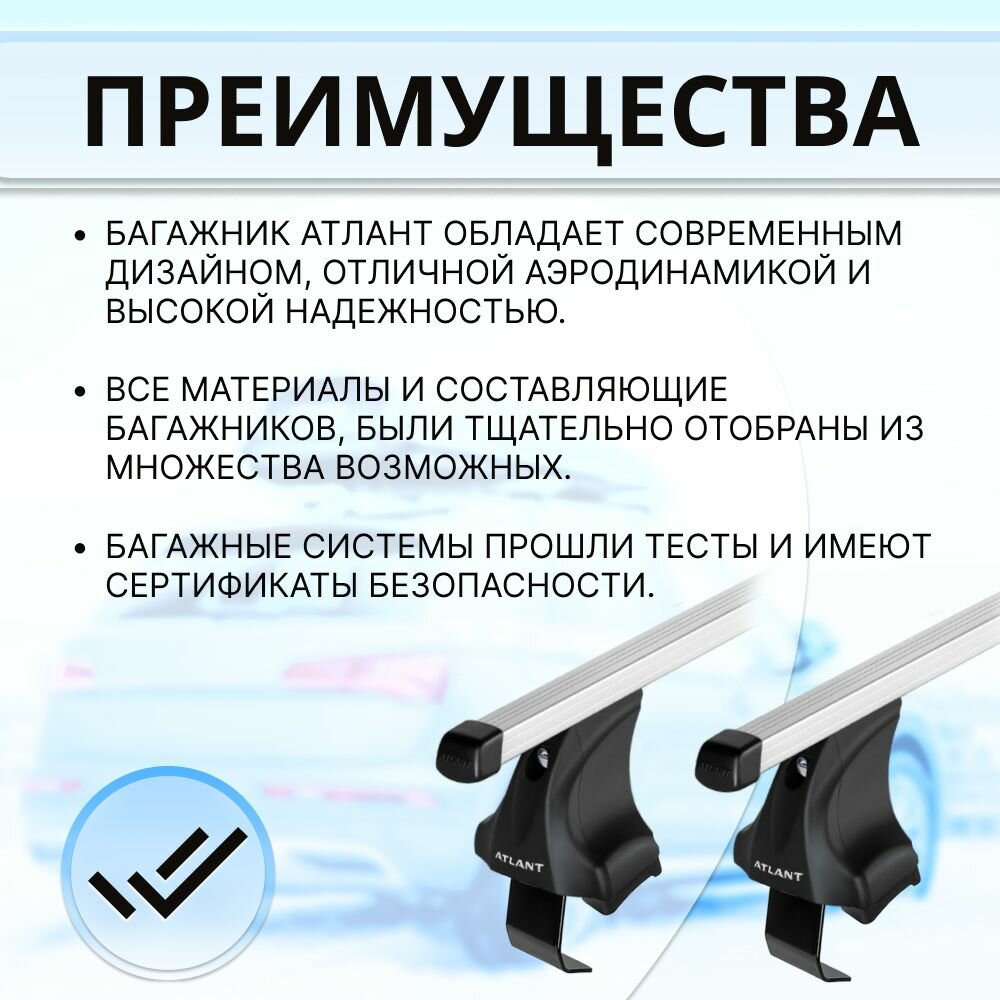 Багажник Атлант на гладкую крышу CHEVROLET Matiz M200 5-дв хэтчбек 2005-2007, поперечины усиленные типа крыло, 90 кг, 110 см , с замком