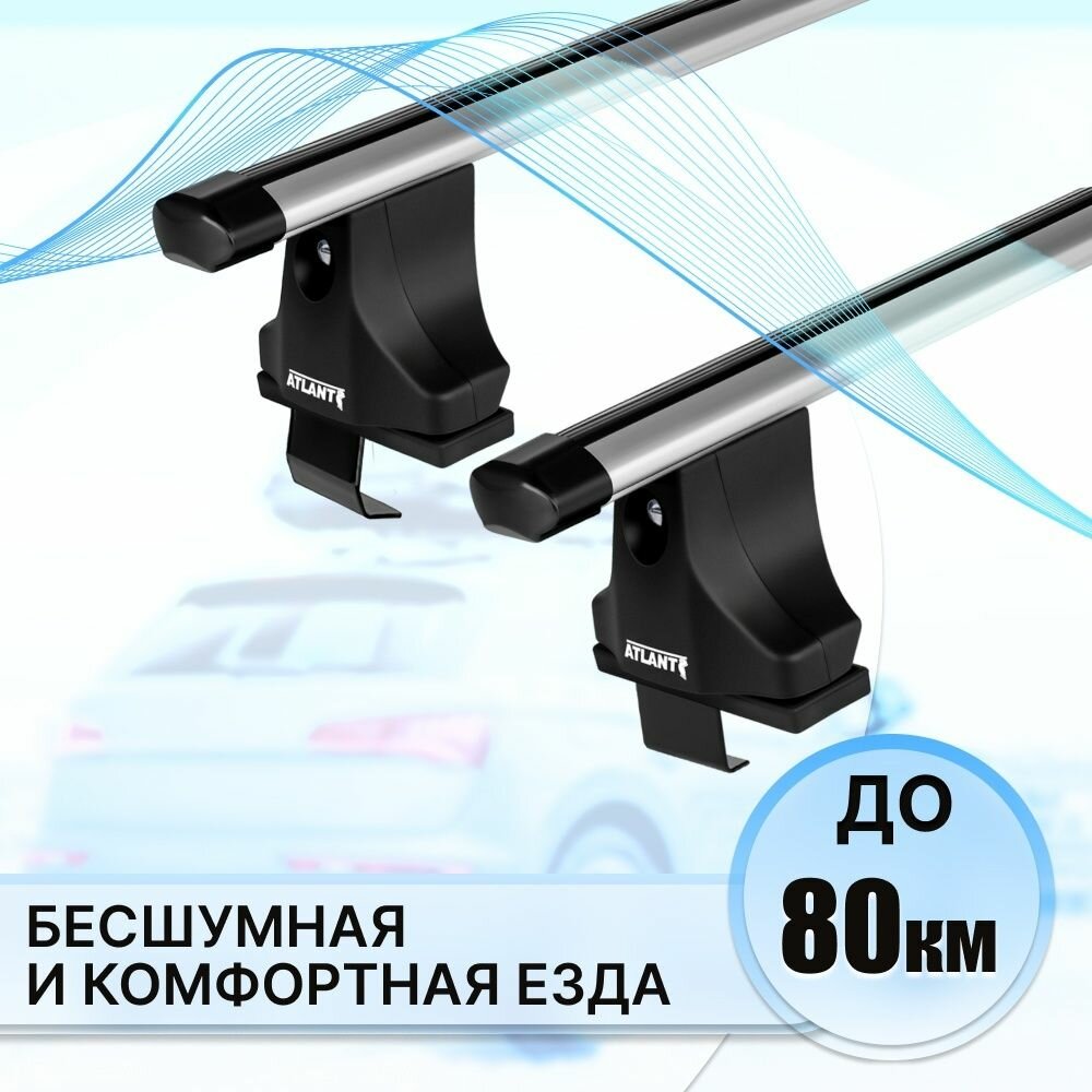 Багажник Атлант на гладкую крышу CHEVROLET Matiz M200 5-дв хэтчбек 2005-2007, поперечины усиленные типа крыло, 90 кг, 110 см , с замком