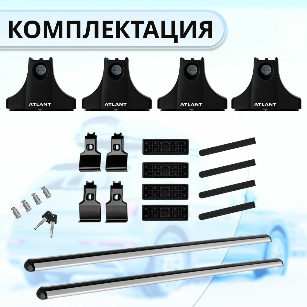 Купить Багажник Атлант на гладкую крышу CHEVROLET Matiz M200 5-дв хэтчбек 2005-2007, поперечины усиленные типа аэро, 90 кг, 110 см , с замком