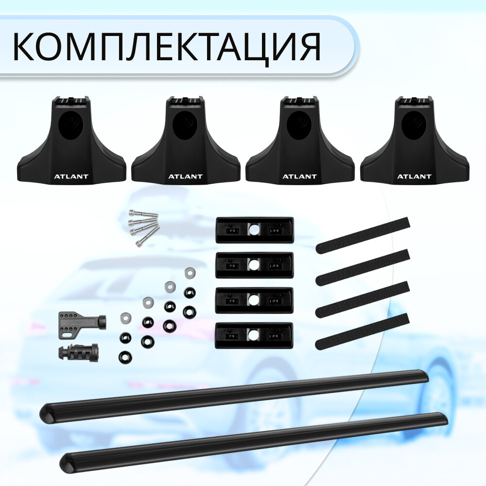 | Подробная комплектация | Комплект опор (4 шт), комплект дуг (2 шт), комплект адаптеров (1 шт), ключ для затяжки, инструкция. |