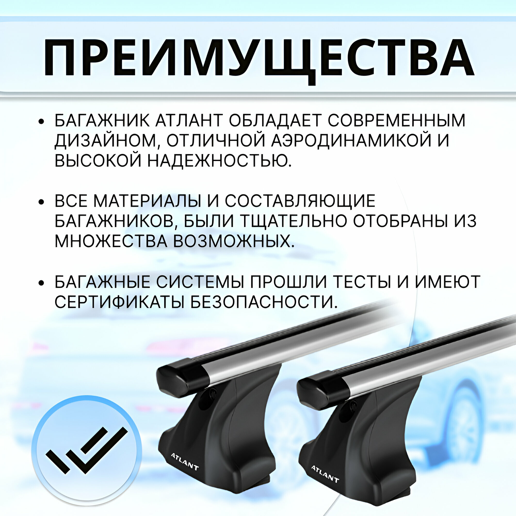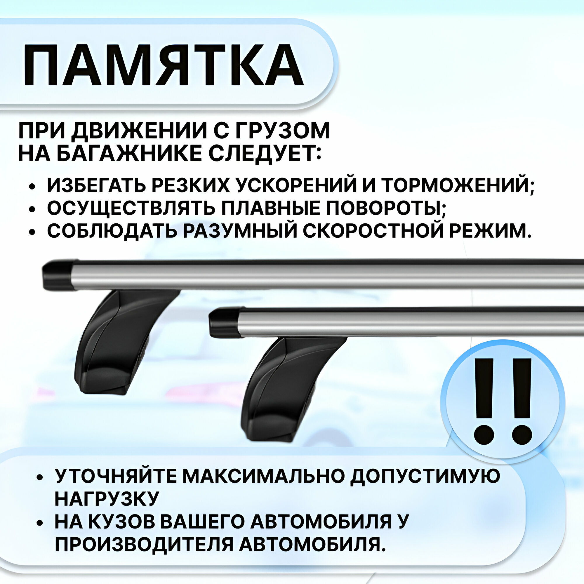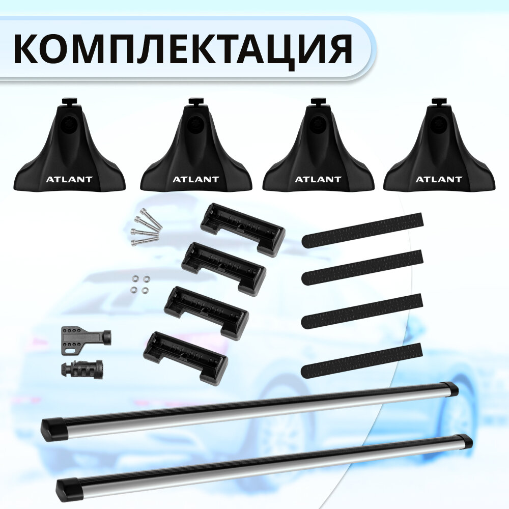 | Подробная комплектация | Комплект опор (4 шт), комплект дуг (2 шт), комплект адаптеров (1 шт), ключ для затяжки, инструкция. |