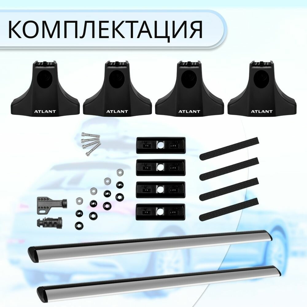 | Подробная комплектация | Комплект опор (4 шт), комплект дуг (2 шт), комплект адаптеров (1 шт), ключ для затяжки, инструкция. |