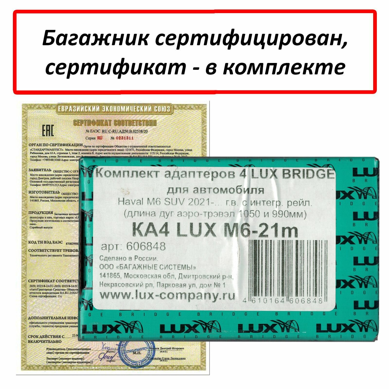 | Подробная комплектация | Комплект опор Lux Bridge, комплект адаптеров для Haval M6, комплект поперечных крыловидных дуг черного цвета |