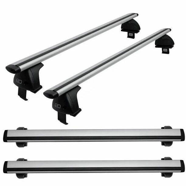 Багажник на крышу ED для Nissan Qashqai II / Ниссан Кашкай кроссовер 2014-н. в. (За дверной проем) : аэродинамические поперечины серебро - 125см. - без замка.