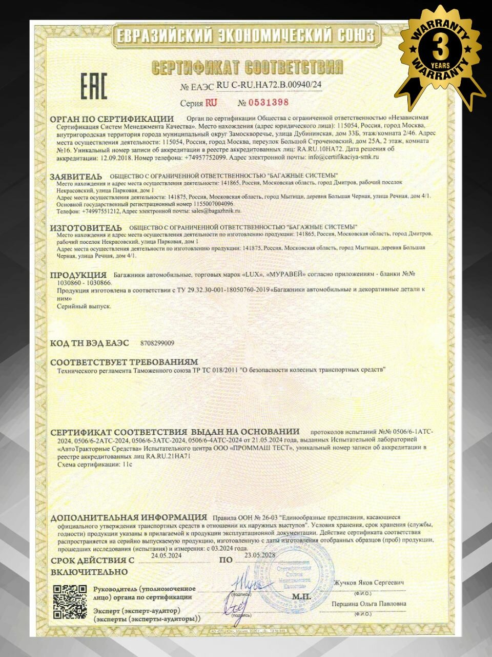багажник Lux Стандарт на крышу Renault Megane II седан/хэтчбек, Renault Scenic II, Renault Grand Scenic II, 1.2 м