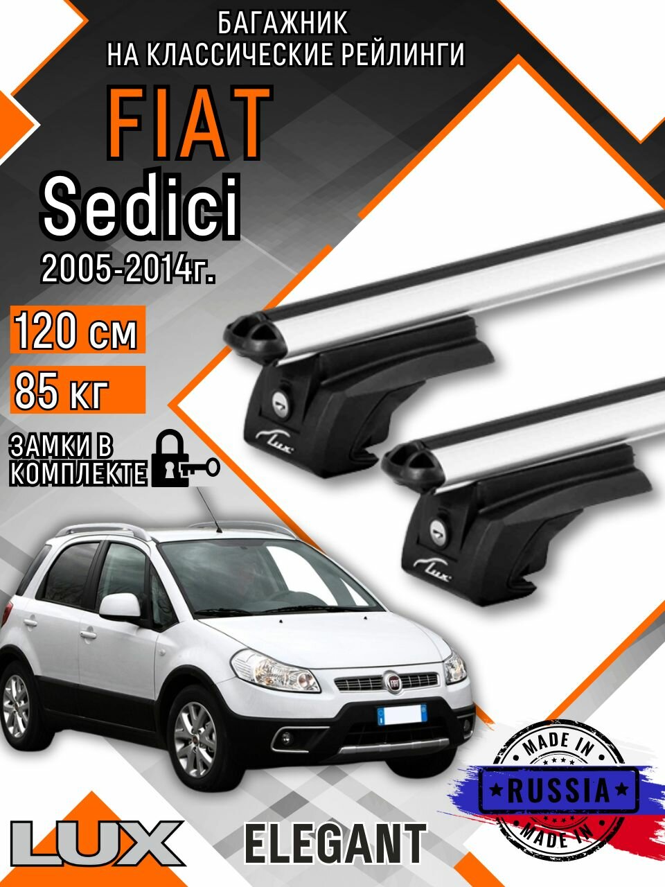 Купить Багажник на крышу авто на рейлинги Fiat Sedici (Фиат седичи) с аэро дугими 120см люкс Элегант
