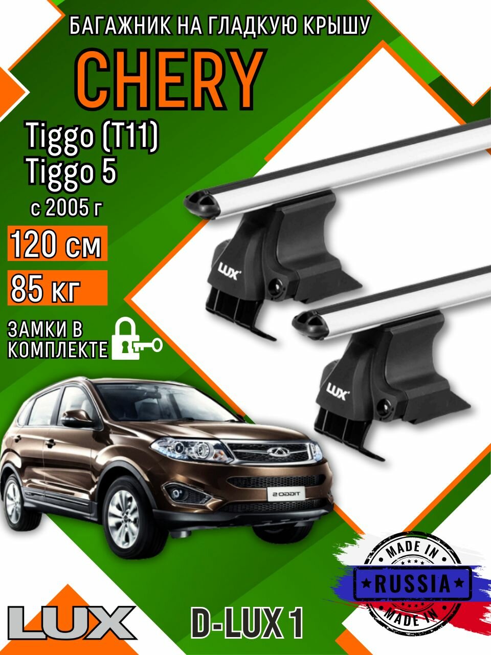 Багажник для автомобиля Chery Tiggo (T11), Tiggo 5 на гладкую крышу с дугами аэро и замком интересное: