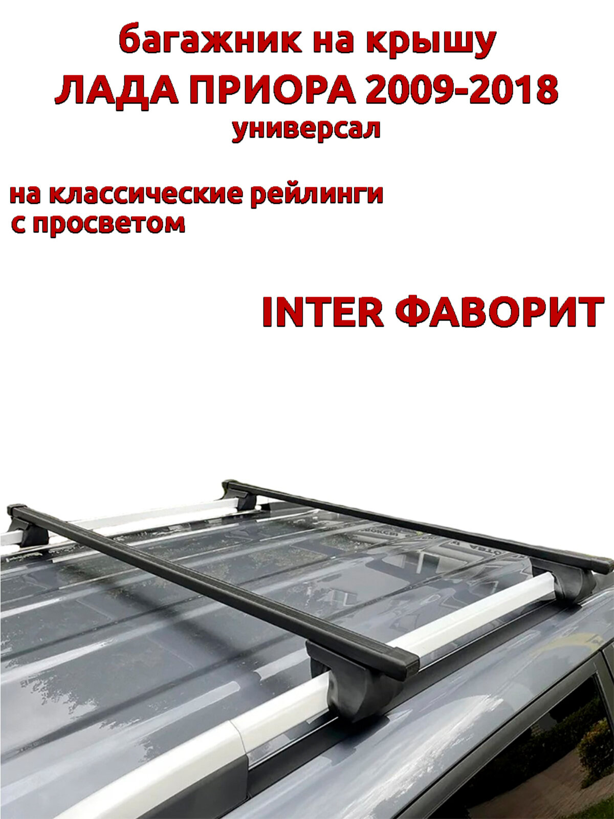 Багажник на крышу для Лада Приора 2009-2018 универсал, на рейлинги, аэро дуги, INTER Фаворит