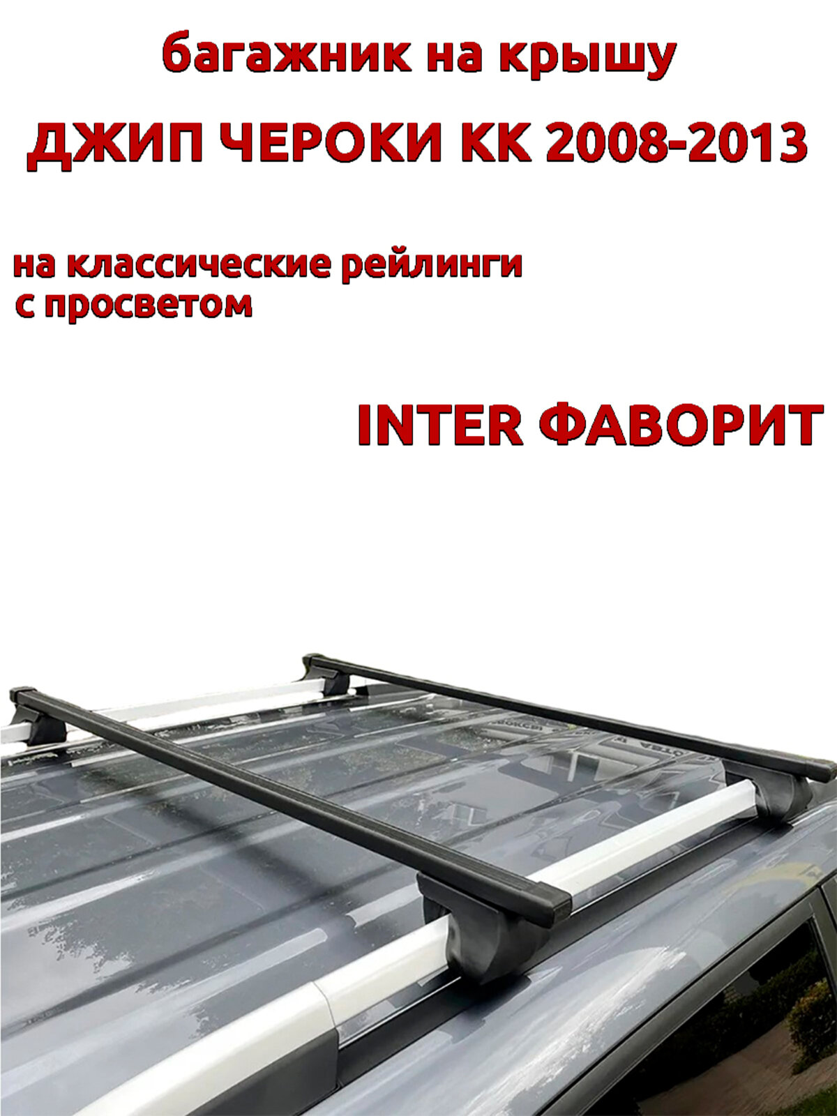 Багажник на крышу для Джип Чероки KK 2008-2013, на рейлинги, крыловидные дуги, INTER Фаворит