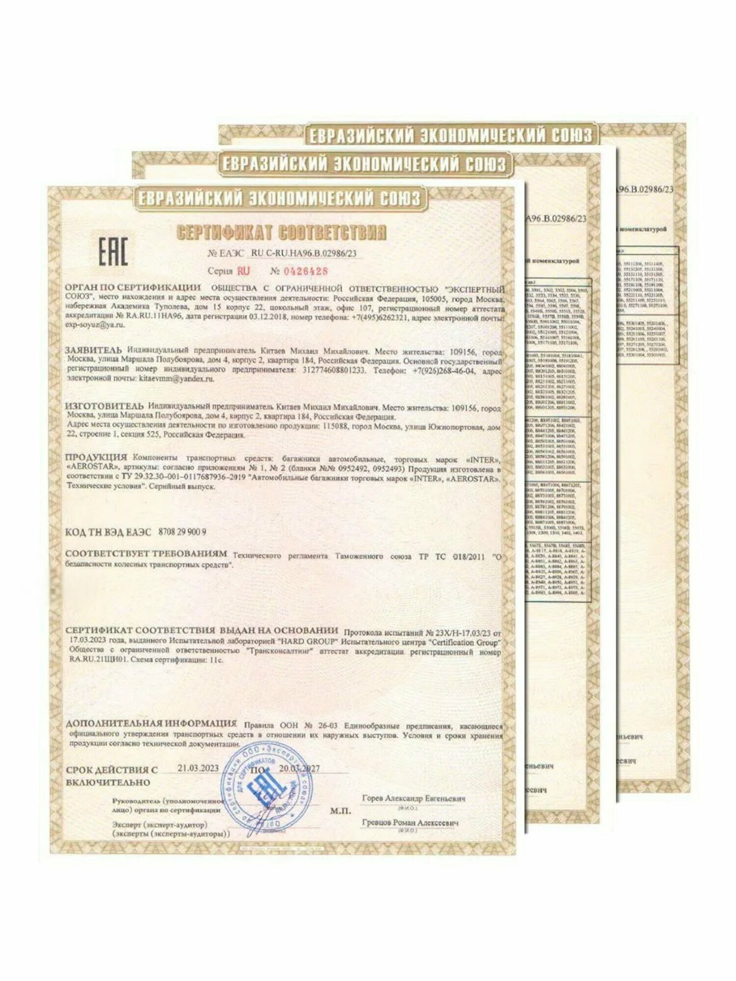 | Подробная комплектация | Комплект опор INTER Титан;Комплект дуг |