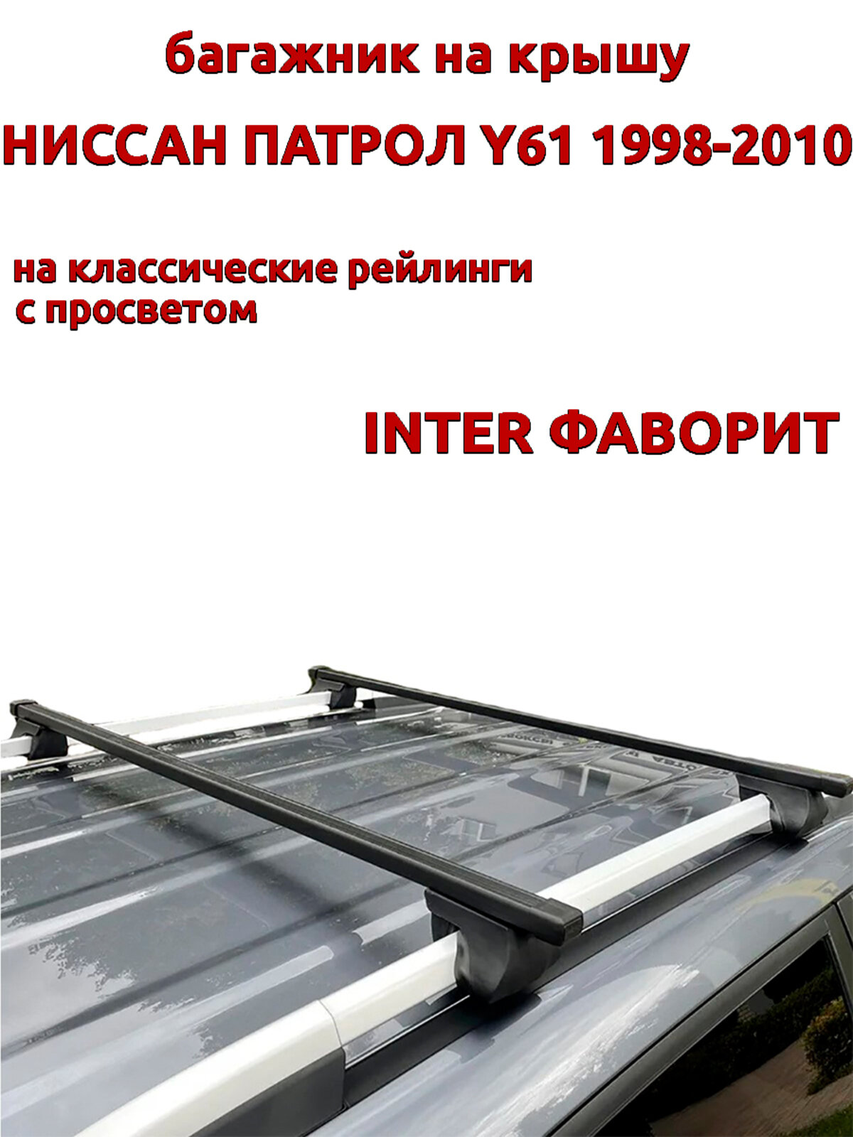 Багажник на крышу для Ниссан Патрол Y61 1998-2010, на рейлинги, аэро дуги, INTER Фаворит