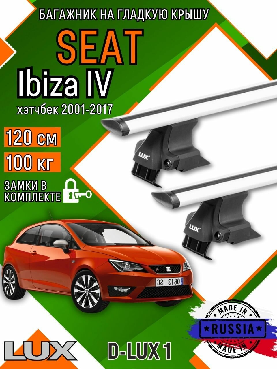 Купить Багажник для автомобиля SEAT Ibiza на гладкую крышу с дугами крыло и замком