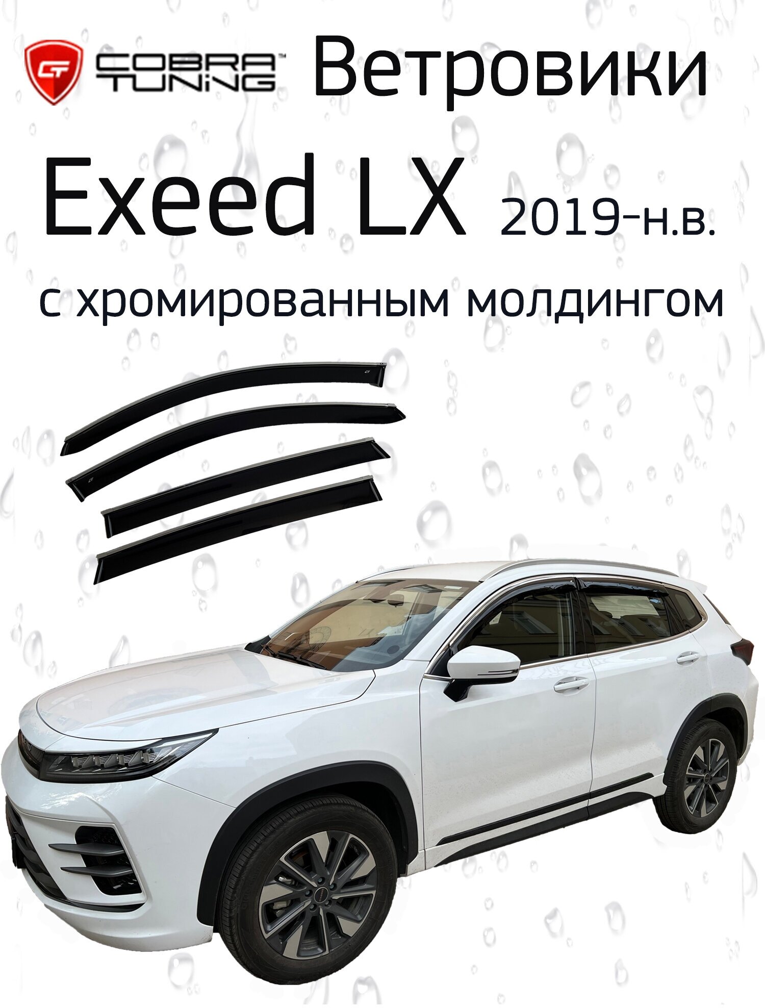 Купить Ветровики (дефлекторы окон) Exeed LX 2019-н. в. накладные Cobra Tuning с хромированным молдингом