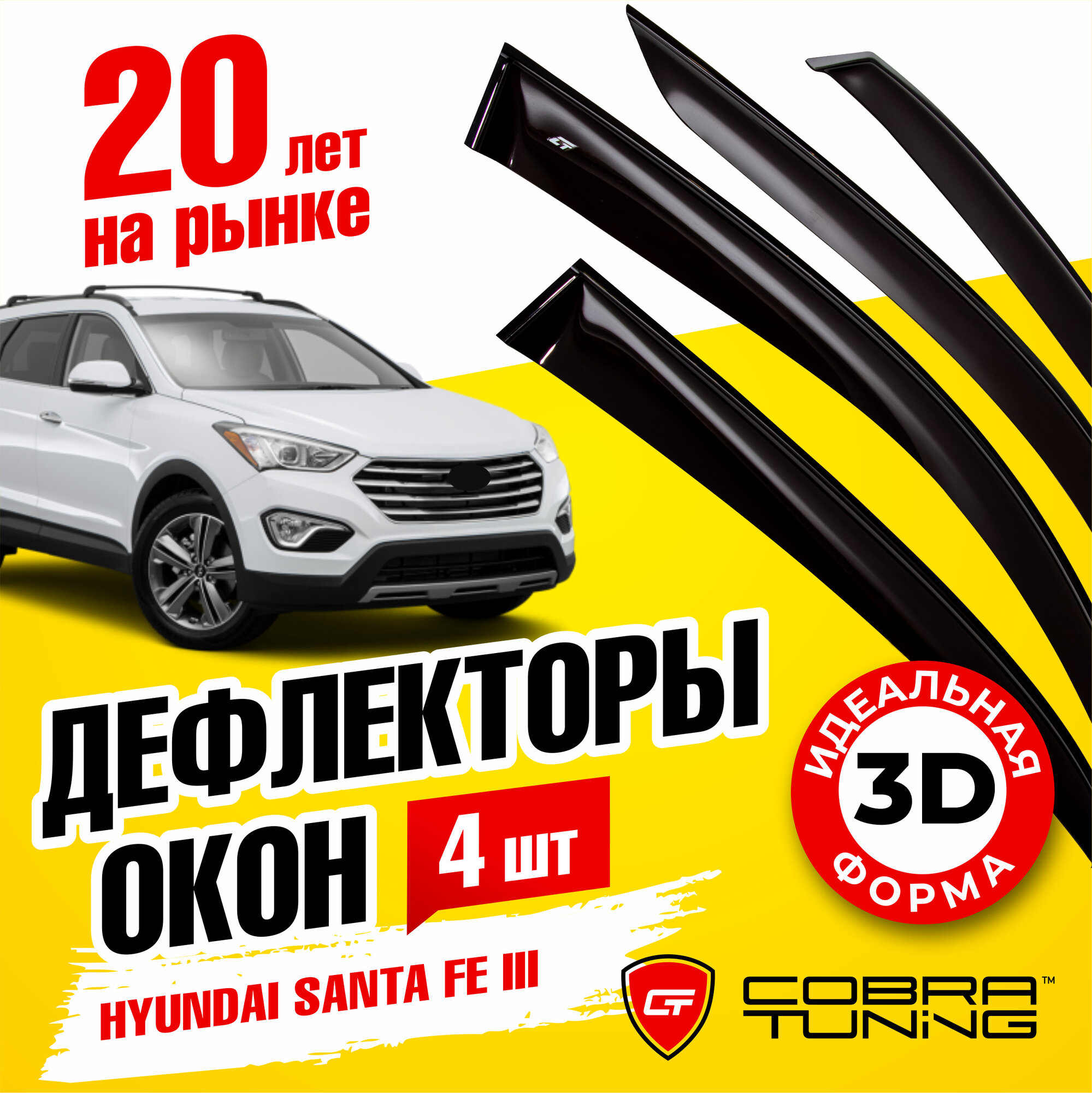 Купить Дефлекторы боковых окон для Hyundai Santa Fe 3 (Хендай Санта Фе) 2012-2018, ветровики на двери автомобиля, Cobra Tuning
