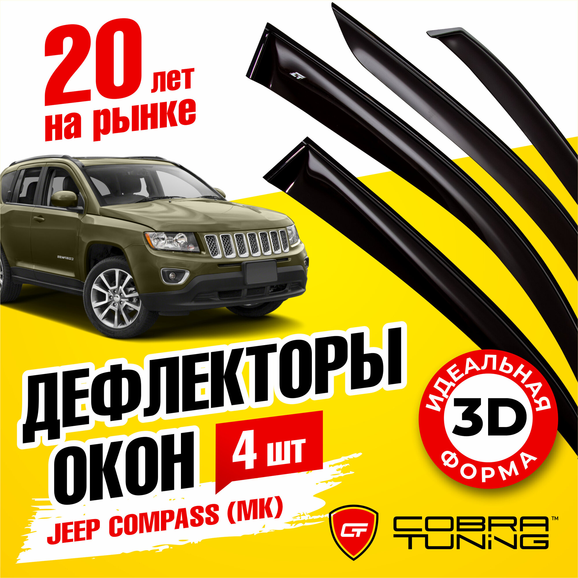 Дефлекторы боковых окон для Jeep Compass (Джип Компас) 2013-2016 (MK), ветровики на двери автомобиля, Cobra Tuning интересное:
