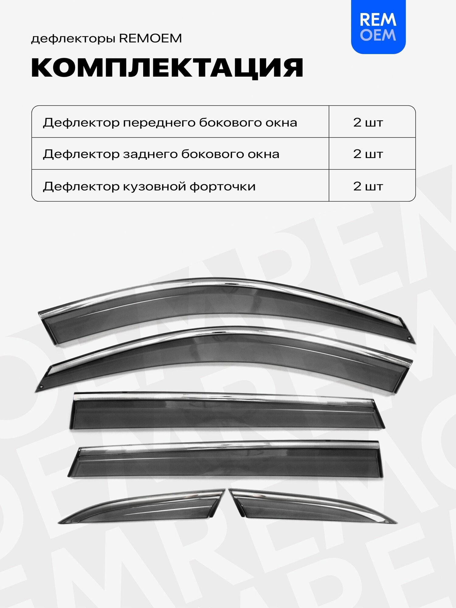Дефлекторы для Хавал Джолион (2020-2024) ветровики с хром молдингом 18 мм, 6 шт Remoem / Haval Jolion интересное: