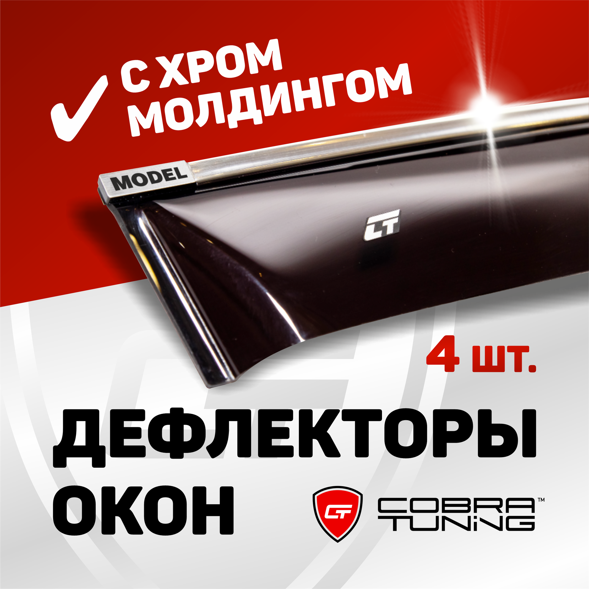 Купить Дефлекторы боковых окон Toyota Land Cruiser Prado 150 (Тойота Ленд Крузер Прадо) 2009-2022, ветровики с хром молдингом, Cobra Tuning