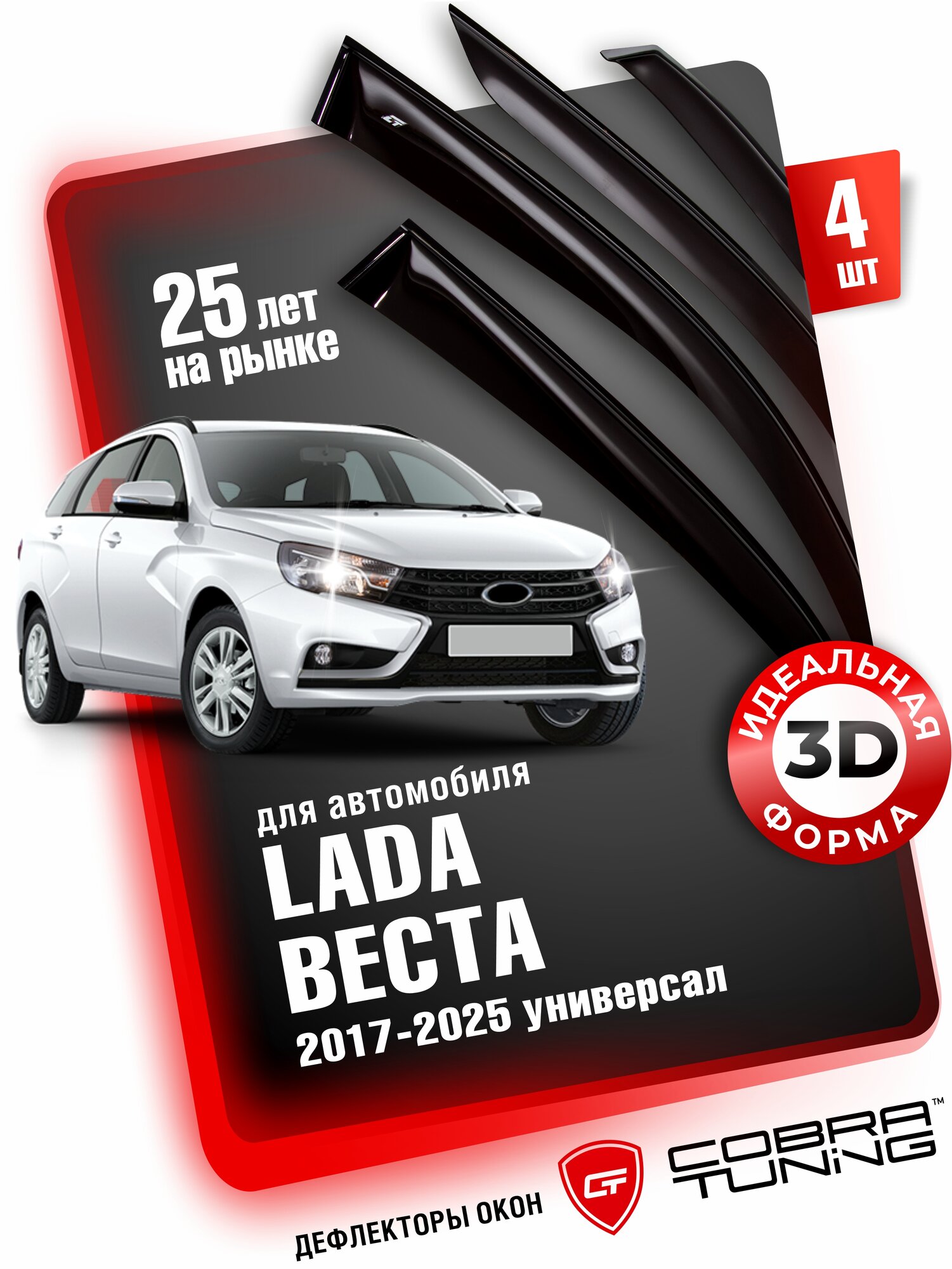 Дефлекторы боковых окон для Лада Веста (Lada Vesta) 2017-2024 универсал, св кросс, sw cross, ветровики на двери автомобиля, Cobra Tuning интересное:
