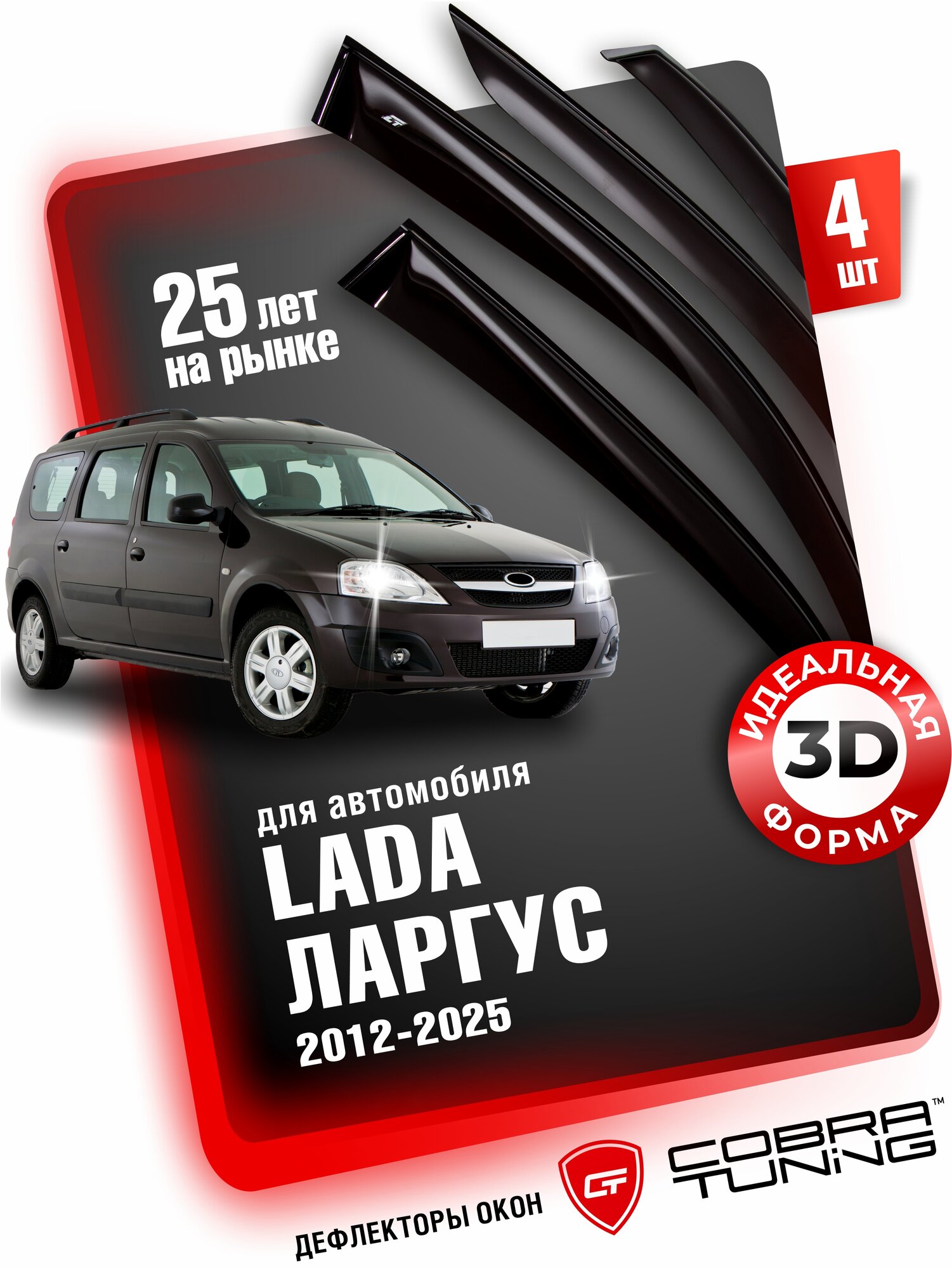 Купить Дефлекторы боковых окон для Лада Ларгус (Lada Largus) 2012-2024, ветровики на двери автомобиля, Cobra Tuning