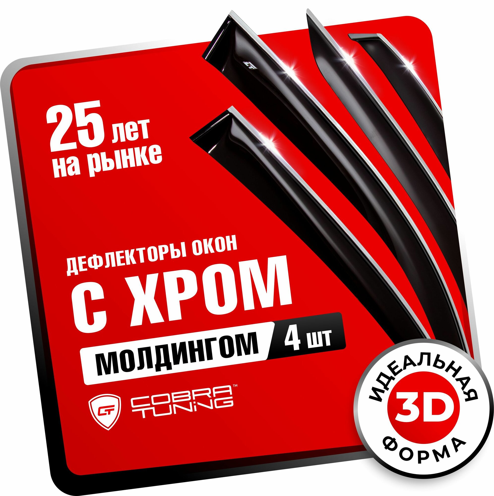 Купить Дефлекторы боковых окон для Лада Ларгус (Lada Largus) 2012-2024, ветровики с хром молдингом, Cobra Tuning