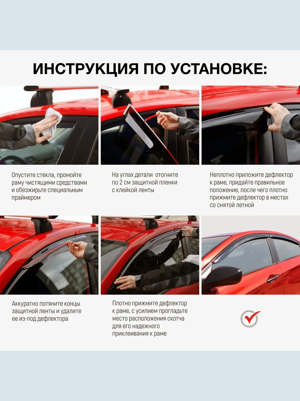 | Комплектация | 4 ветровика (2 на передние окна, 2 на задние) Скотч 3М |