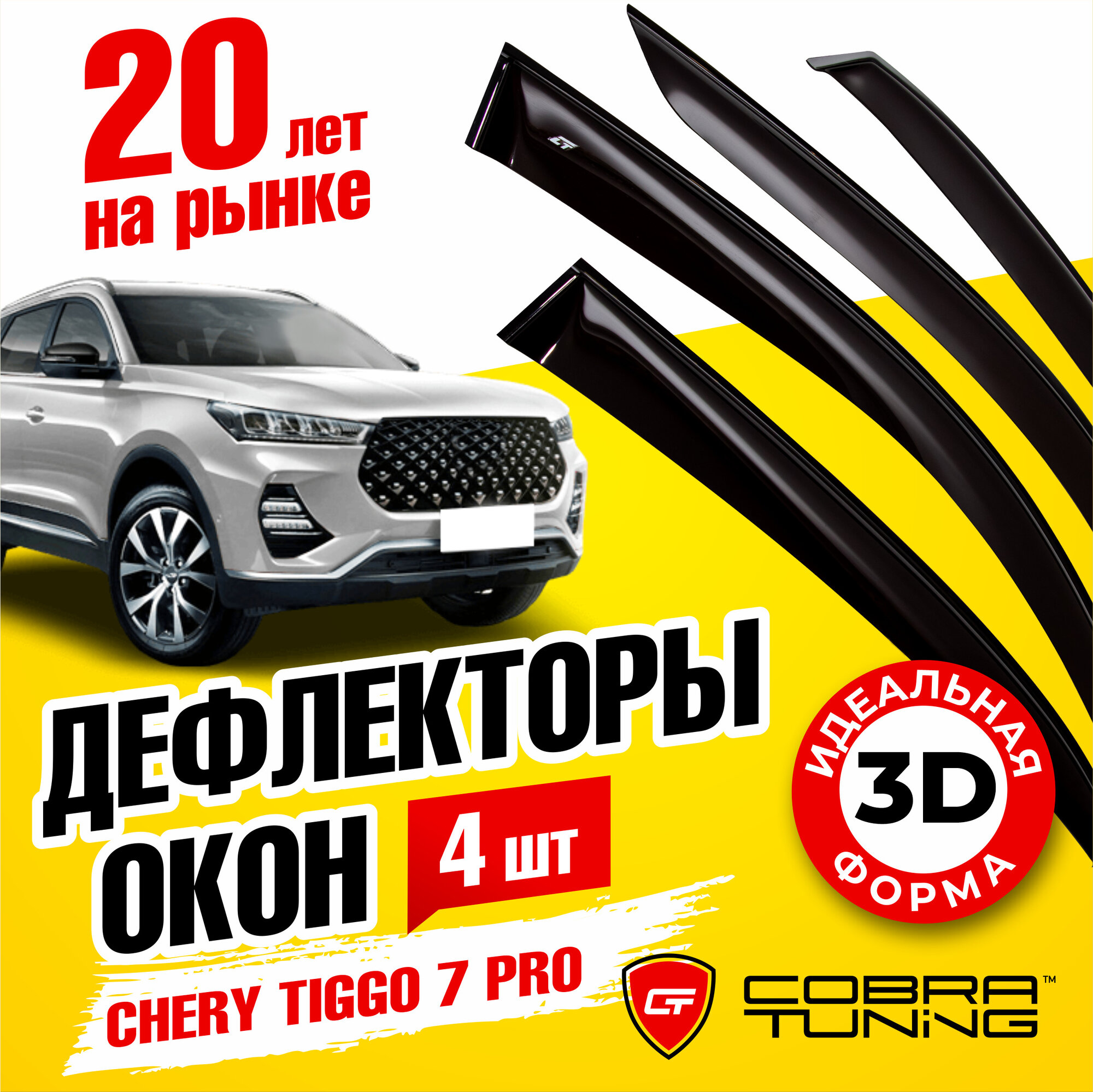 Купить Дефлекторы боковых окон для Chery Tiggo 7 Pro, Pro Max (Чери Тигго) 2020-2024, Xcite X-Cross 7 (Иксайт Икс-кросс) 2024, ветровики на двери автомобиля, Cobra Tuning