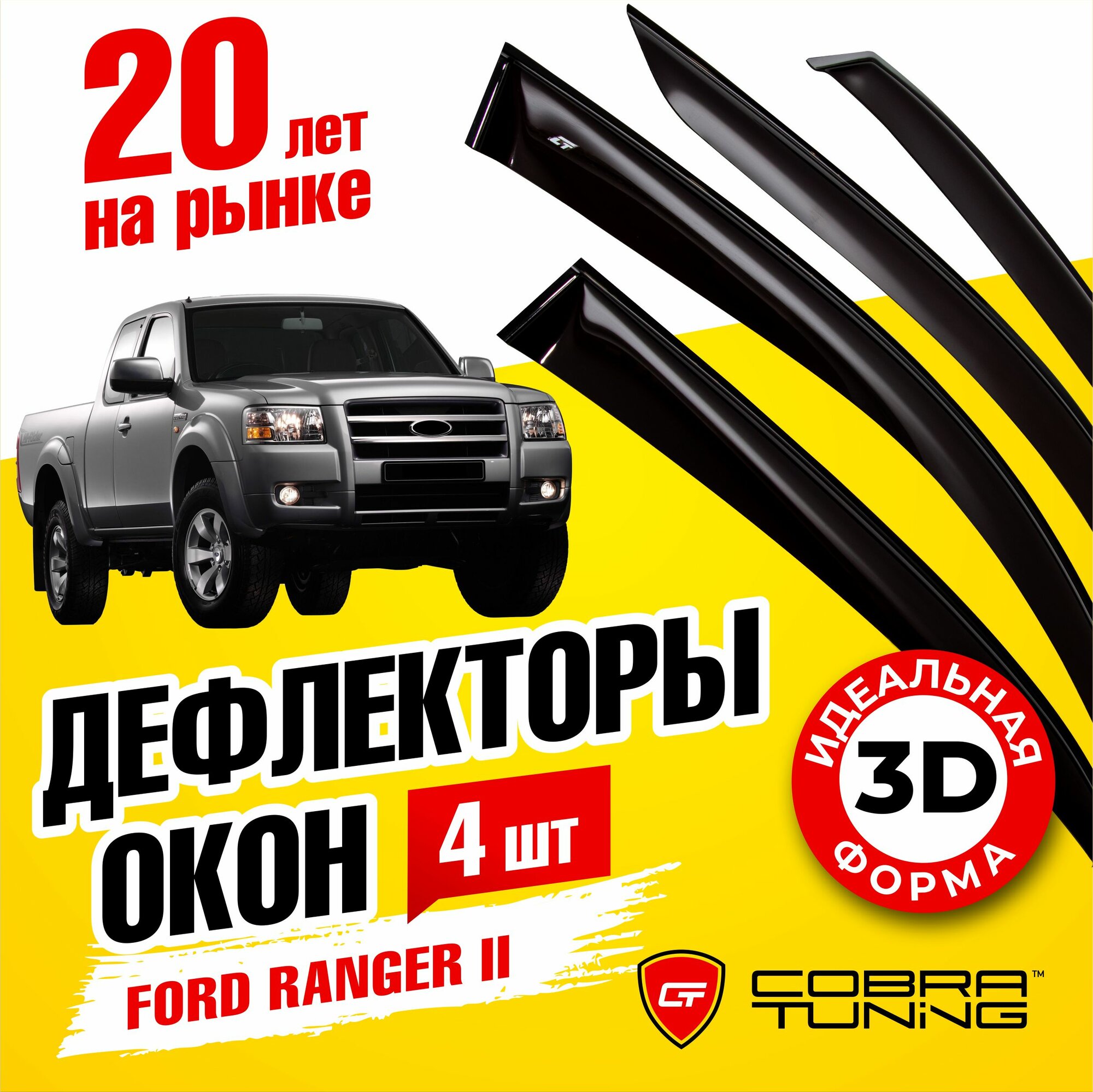 Купить Дефлекторы боковых окон для Ford Ranger 2 (Форд Рейнджер) 2007-2011, ветровики на двери автомобиля, Cobra Tuning