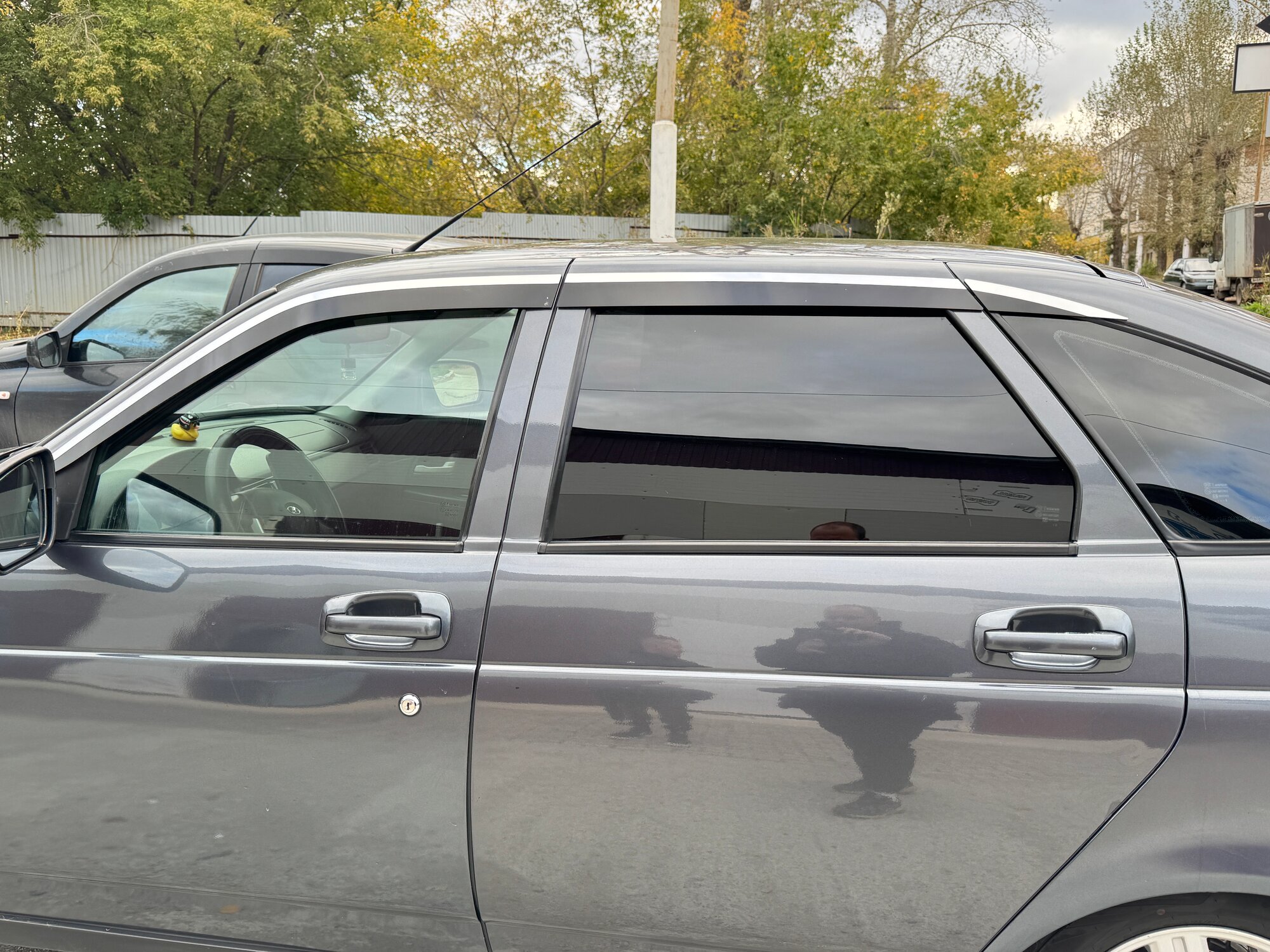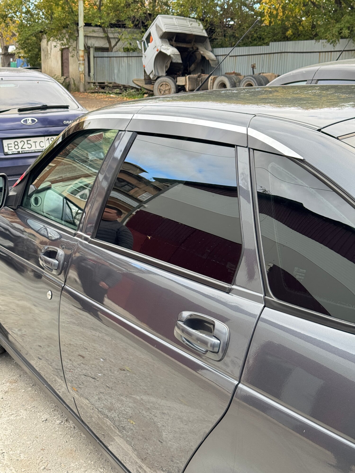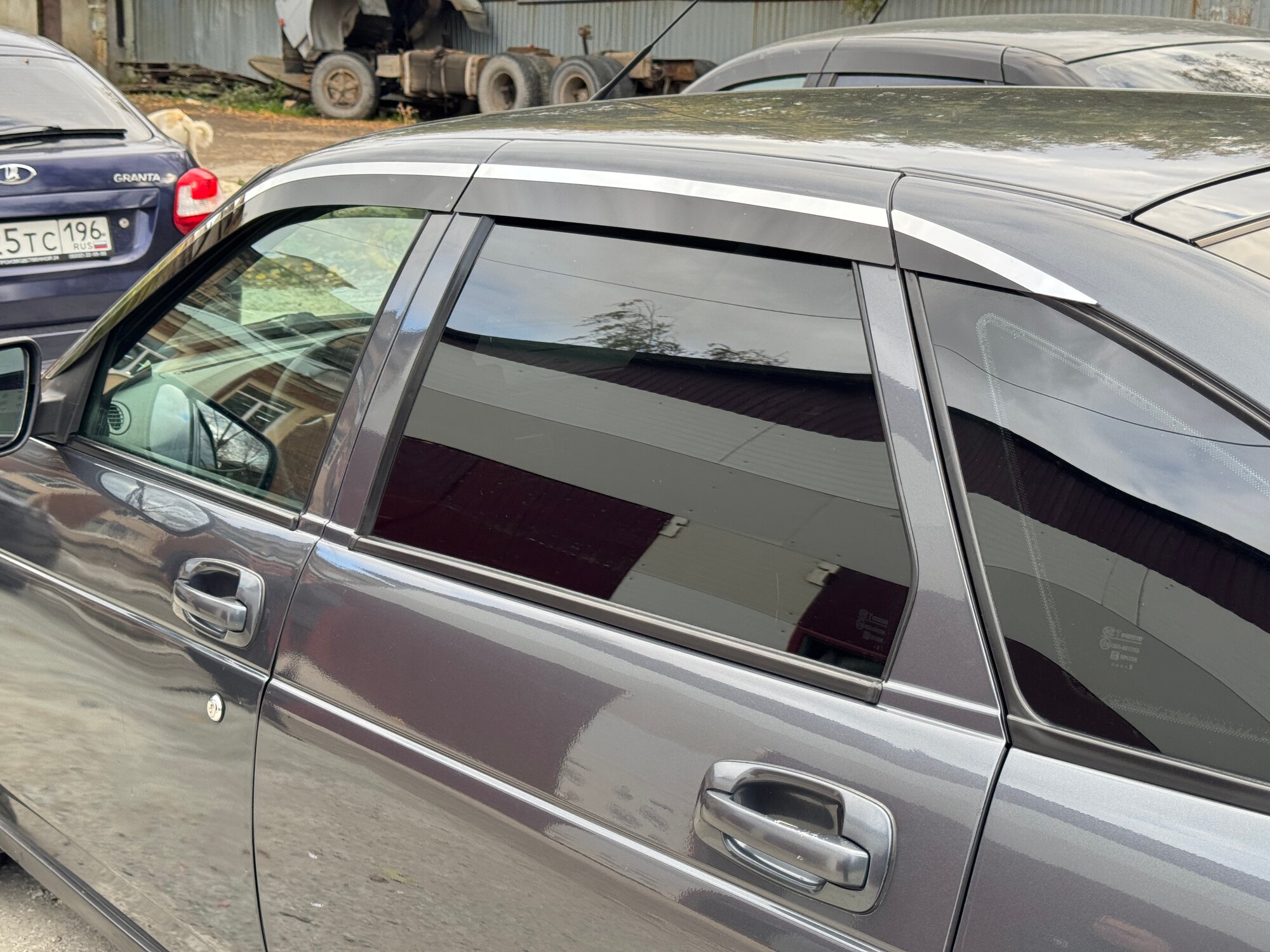 2D дефлекторы с хромом для окон Lada Priora хэтчбек / Ветровики на Лада Приора хэтчбек / 2d дефлекторы. Комплект 6 шт. интересное: