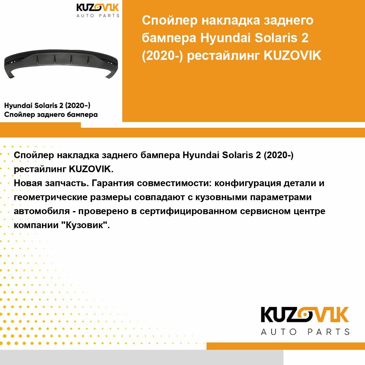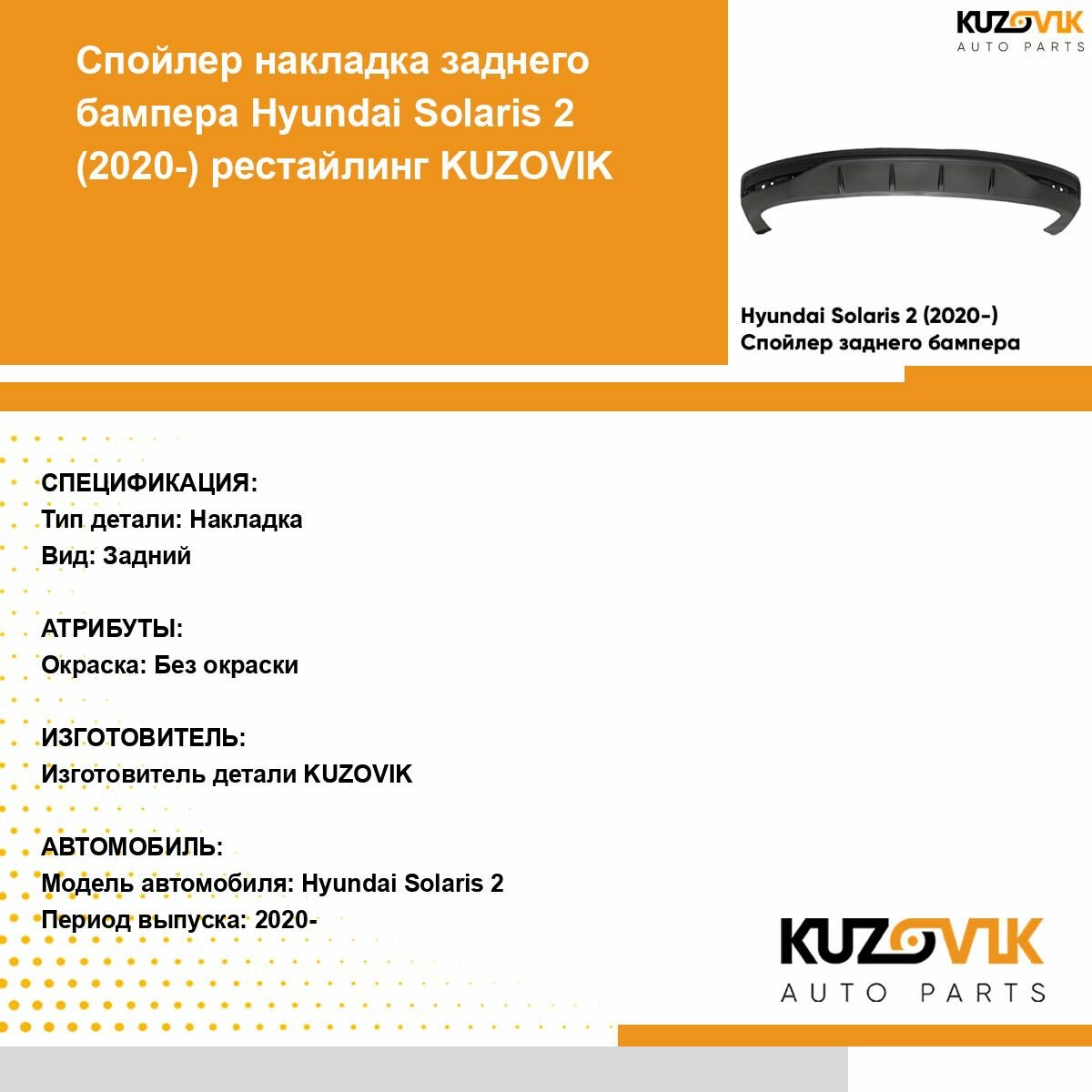 Губа, накладка заднего бампера Hyundai Solaris Хендай Солярис 2 (2020-) рестайлинг, защита спойлер накладка интересное: