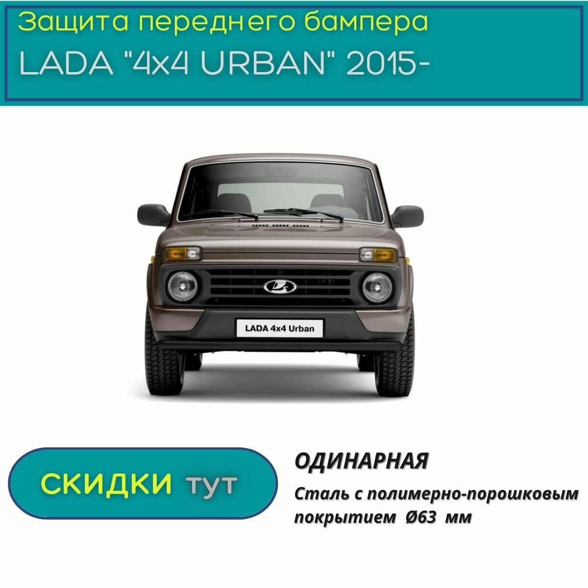 Защита переднего бампера PT GROUP для LADA "4х4 URBAN" 2015-н. в. (Лада "4х4" Урбан ) одинарная 63 мм ППК "шагрень" интересное: