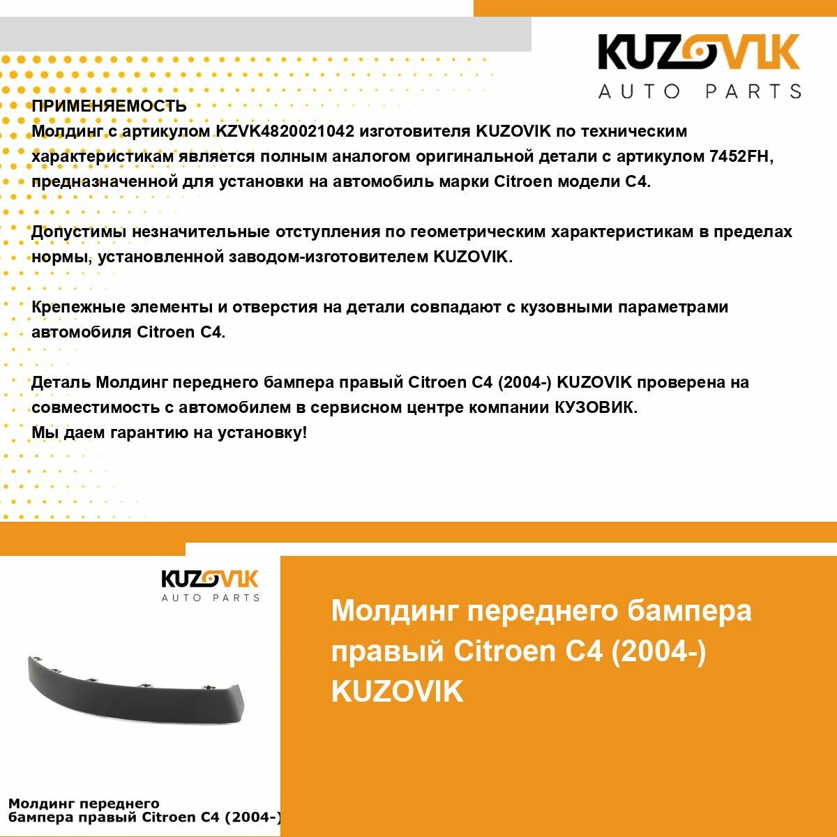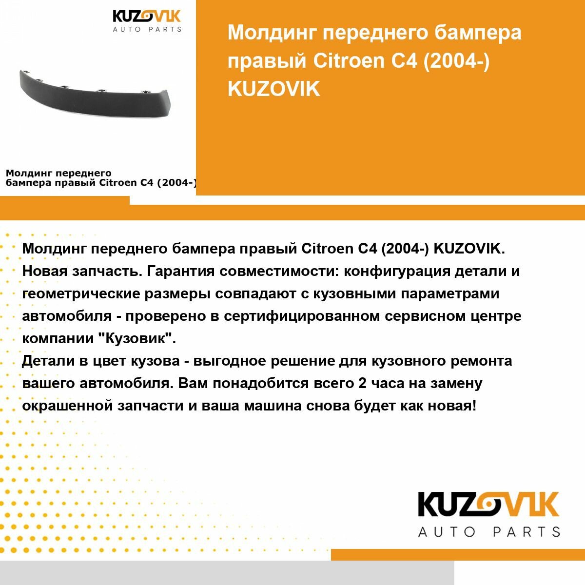 | Подробная комплектация | Молдинг переднего бампера Ситроен Citroen C4 1 (2004-2008) правый |