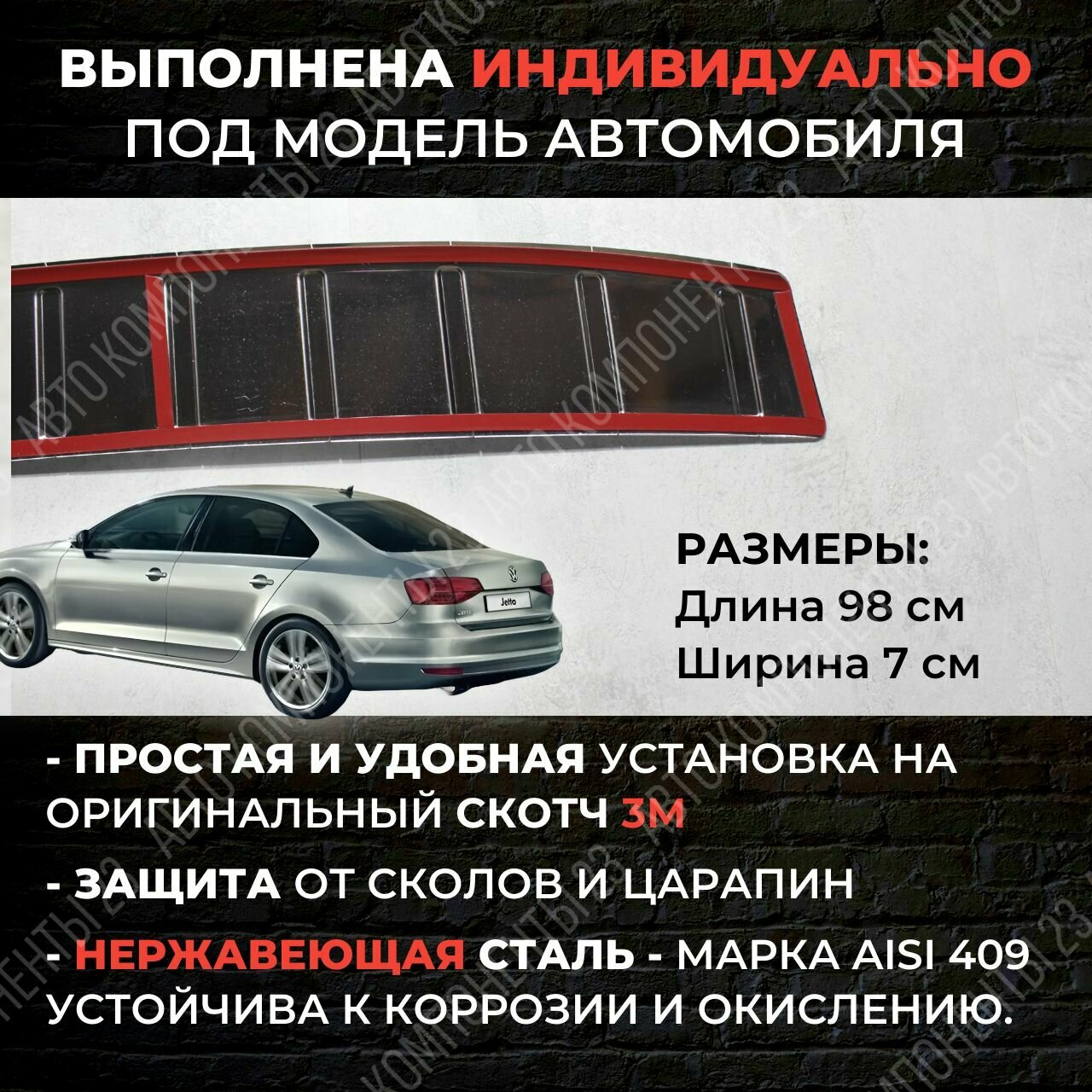 | Дополнительная информация | накладка на задний бампер из нержавеющей стали это стильный и функциональный аксессуар для вашего автомобиля, она предотвращает царапины, сколы и другие повреждения бампер, установка проста, без специальных инструментов, нержавеющая сталь обеспечивает надежную защиту от коррозии, накладка добавляет элегантности и стиля задней части автомобиля, придавая ему уникальный вид |