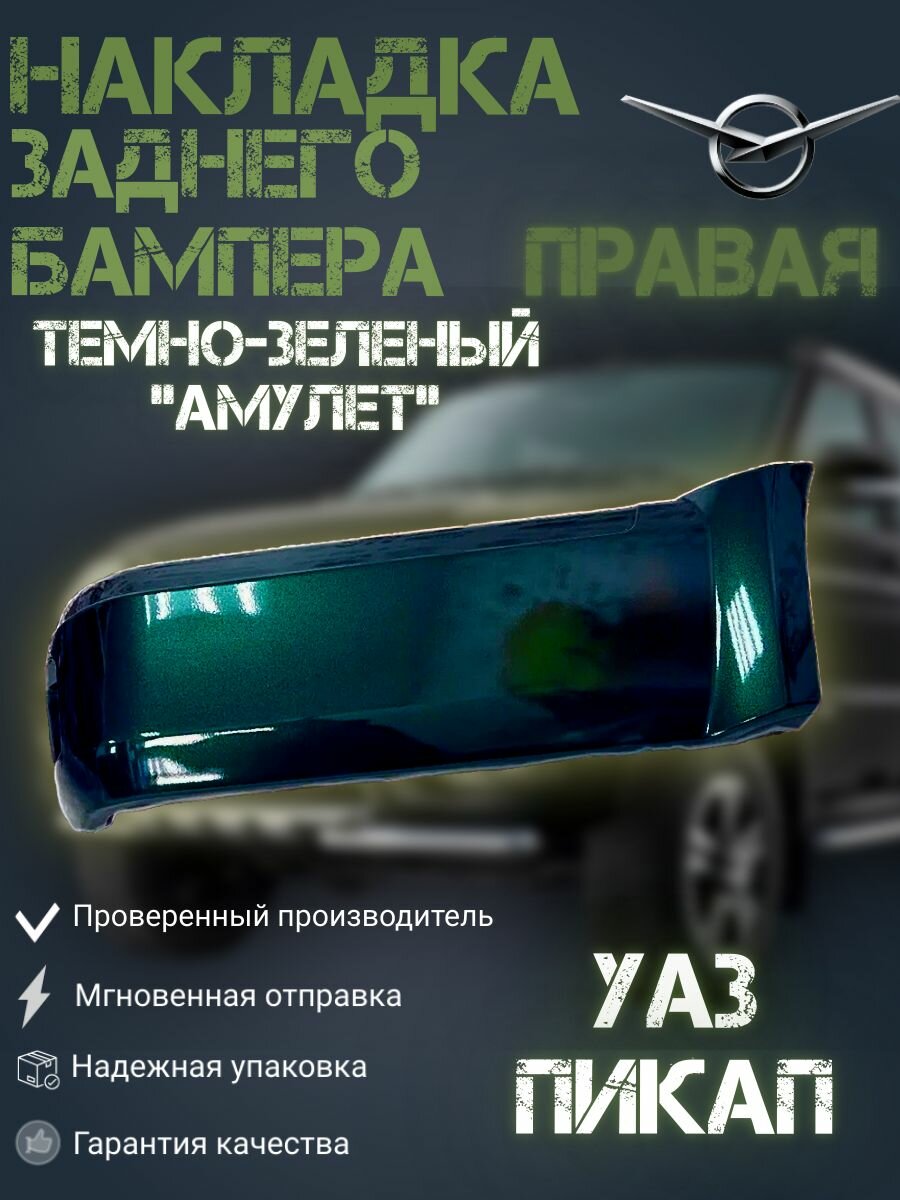 Купить Накладка заднего бампера УАЗ 2363 Пикап правая Амулет (темно-зеленый)