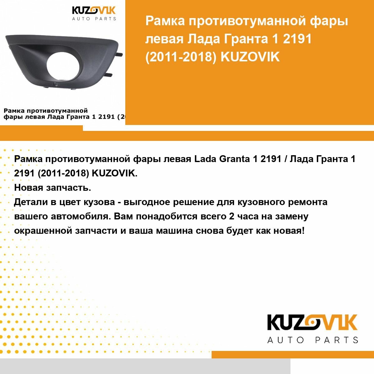 | Подробная комплектация | Рамка противотуманной фары левая для Лада Гранта 1 2191 (2014-2018) рестайлинг, накладка, решетка бампера |