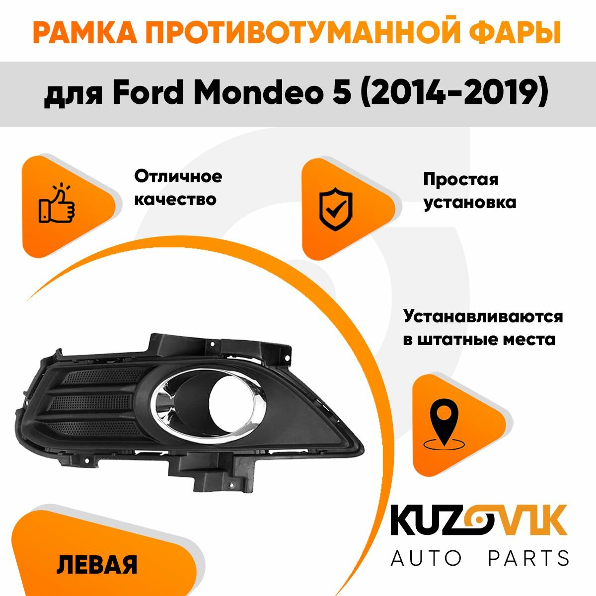 | Подробная комплектация | Рамка противотуманной фары для Форд Мондео Ford Mondeo 5 (2014-2019) с хромированной окантовкой левая, накладка бампера, птф, туманка |